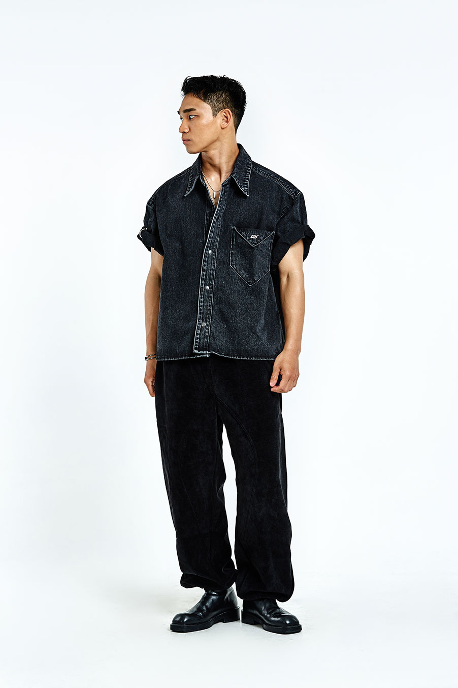 상품명: 51퍼센트(51PERCENT) Triangle Denim Half Shirt - Washed Black
