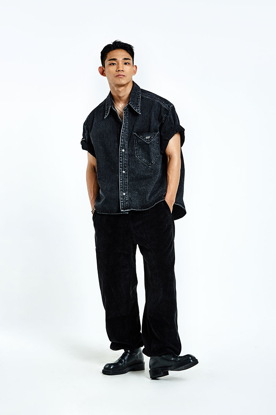 나는 SOLO <나는 솔로> 161회 데프콘 데님 셔츠 옷 패션 브랜드 정보 - 51퍼센트 51PERCENT Triangle denim Half shirt - Washed black