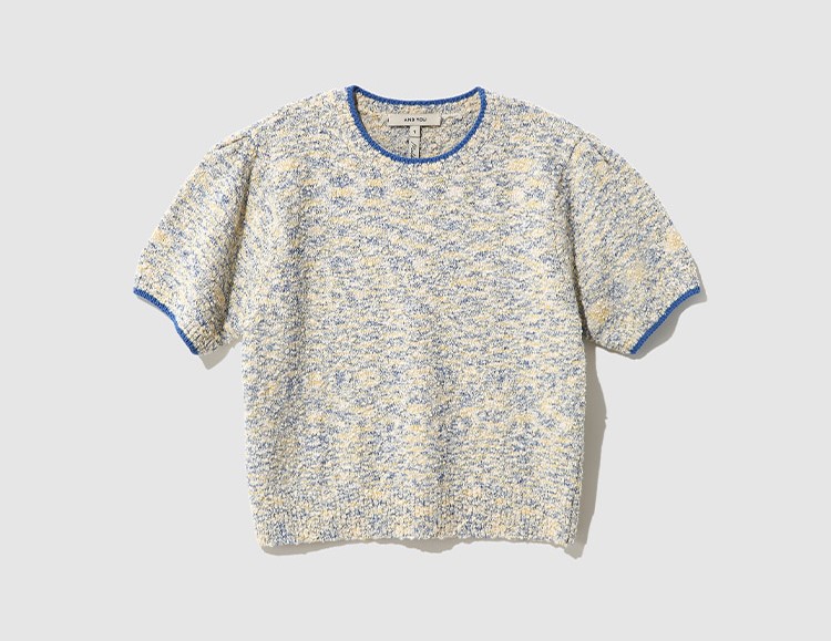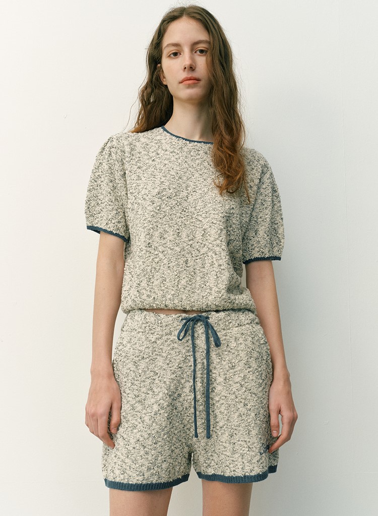 [AND YOU 앤유] [SET]호리즌탈 볼륨 소매 니트 + 노스코트 로고 자수 니트 쇼츠 (Blue multi/Black multi)