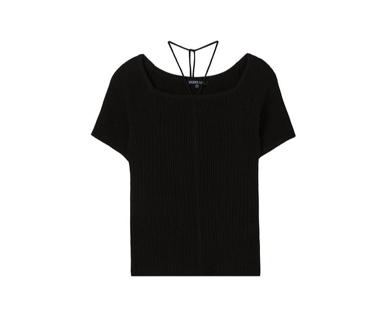 특히, 리본 디테일과 홀터넥 디자인이 돋보이기 때문에 심플한 액세서리와 함께 연출해 니트의 매력을 극대화하는 것이 좋습니다.