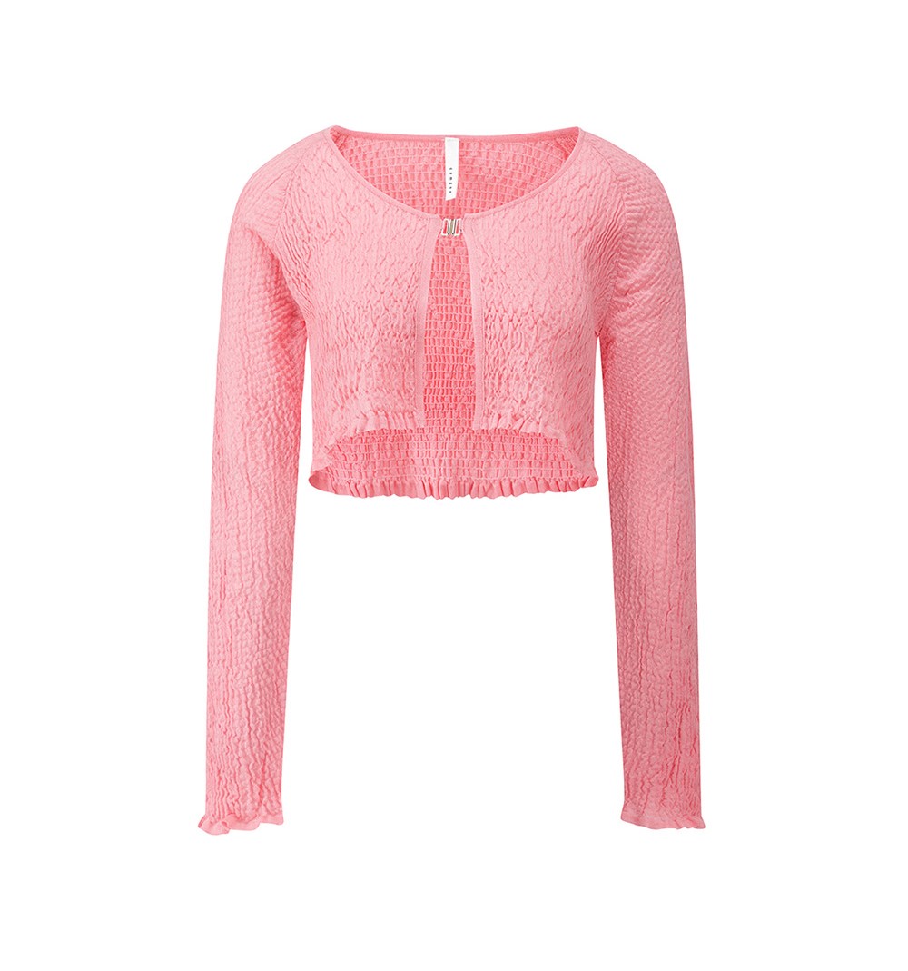이 핑크 볼레로 가디건은 여성스러운 원피스나 블라우스와 매치하면 로맨틱한 룩을 완성할 수 있습니다.