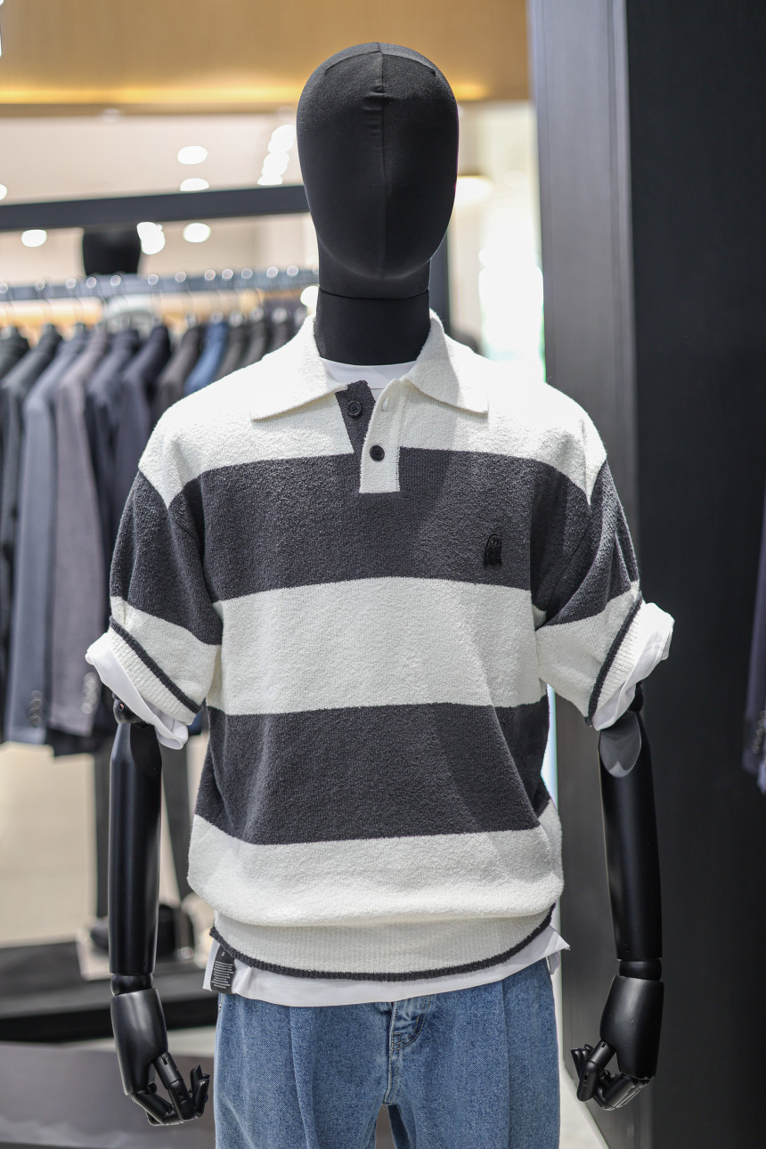 지오송지오 24S/S 셈블런스 스트라이프 오픈 카라 니트 다크그레이 ZG2KT881DG : 지오송지오 광양점