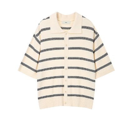 던스트 DUNST 유니섹스 오픈 칼라 부클 니트 네이비 스트라이프
