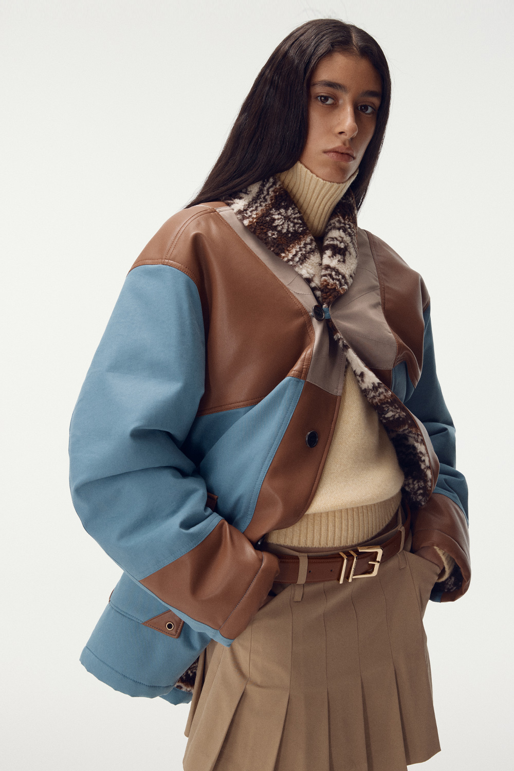 자켓 자체가 포인트이기 때문에, 심플한 이너와 함께 스타일링하면 자켓의 디자인이 더욱 돋보입니다.