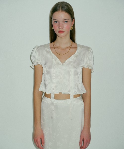 오버듀플레어 jacquard crop blouse : 달고나붕