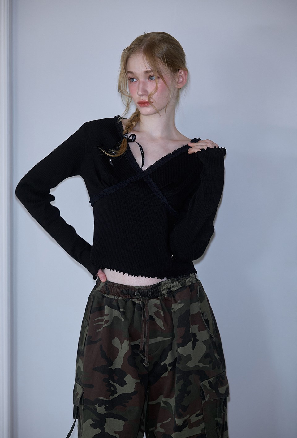 [Rosefrantz 로제프란츠] Cross Lace Long Sleeve [Black]