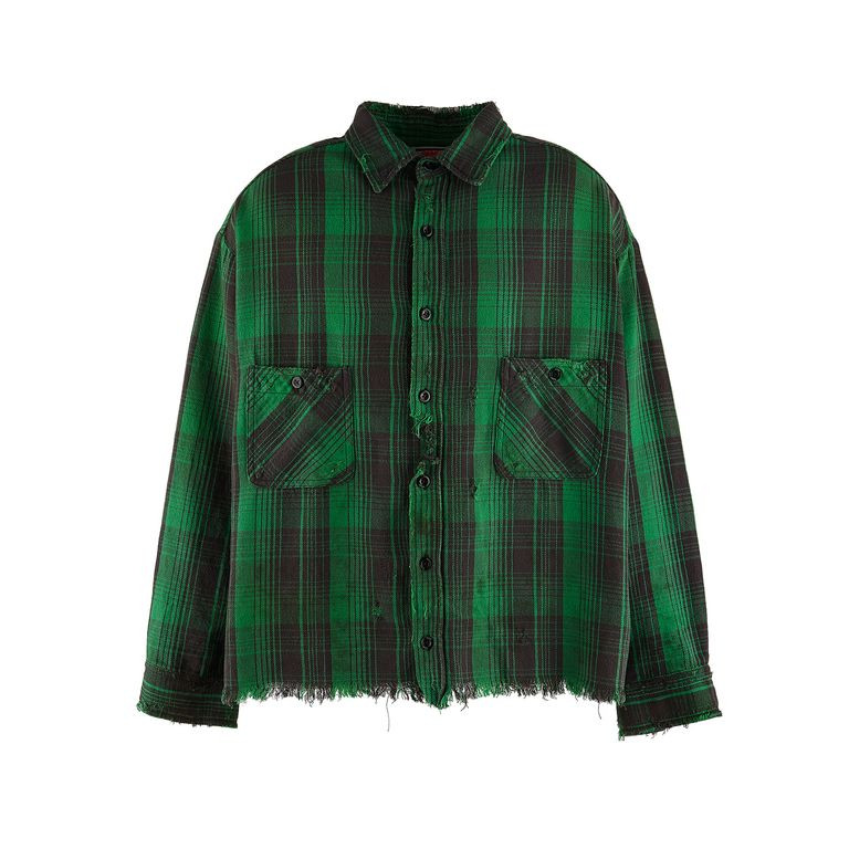 이 Distressed Checked Cotton-Flannel Shirt는 그린 컬러의 체크 패턴과 자연스러운 디스트레스(빈티지) 디테일로 개성 넘치는 스타일을 연출할 수 있는 아이템입니다.