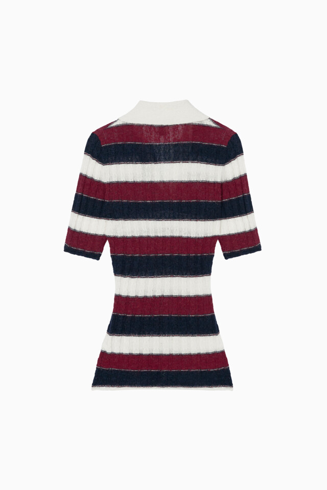 이혜성처럼 이 프레피 스트라이프 폴로 스웨터는 슬림한 팬츠나 플리츠 스커트와 함께 스타일링하면 클래식한 룩을 연출할 수 있습니다.