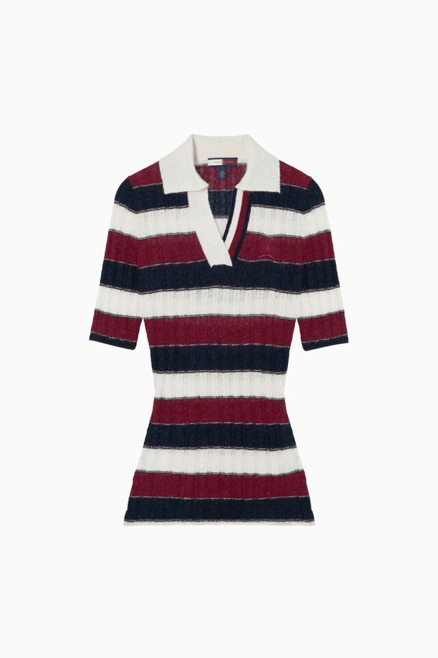 **타미힐피거(TOMMY HILFIGER)**의 프레피 스트라이프 폴로 스웨터로 이혜성처럼 세련된 프레피 룩을 완성해보세요!