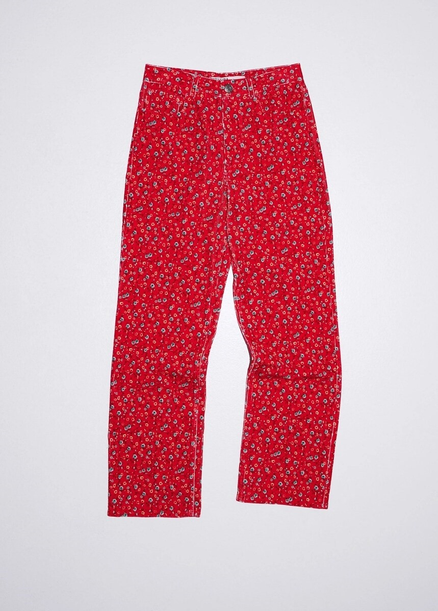 레드 플라워 프린트 코듀로이 팬츠 B226JWP013RDA
