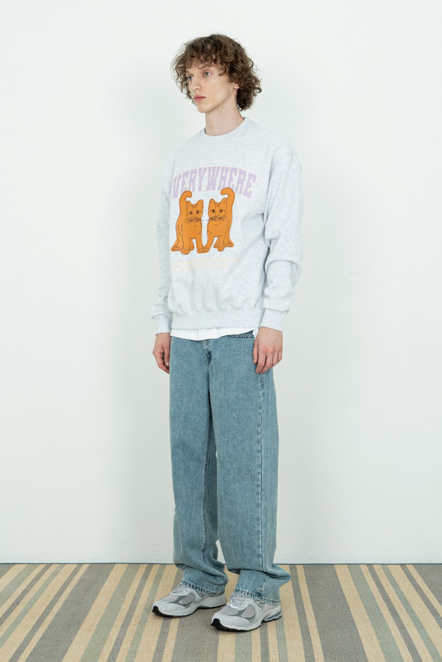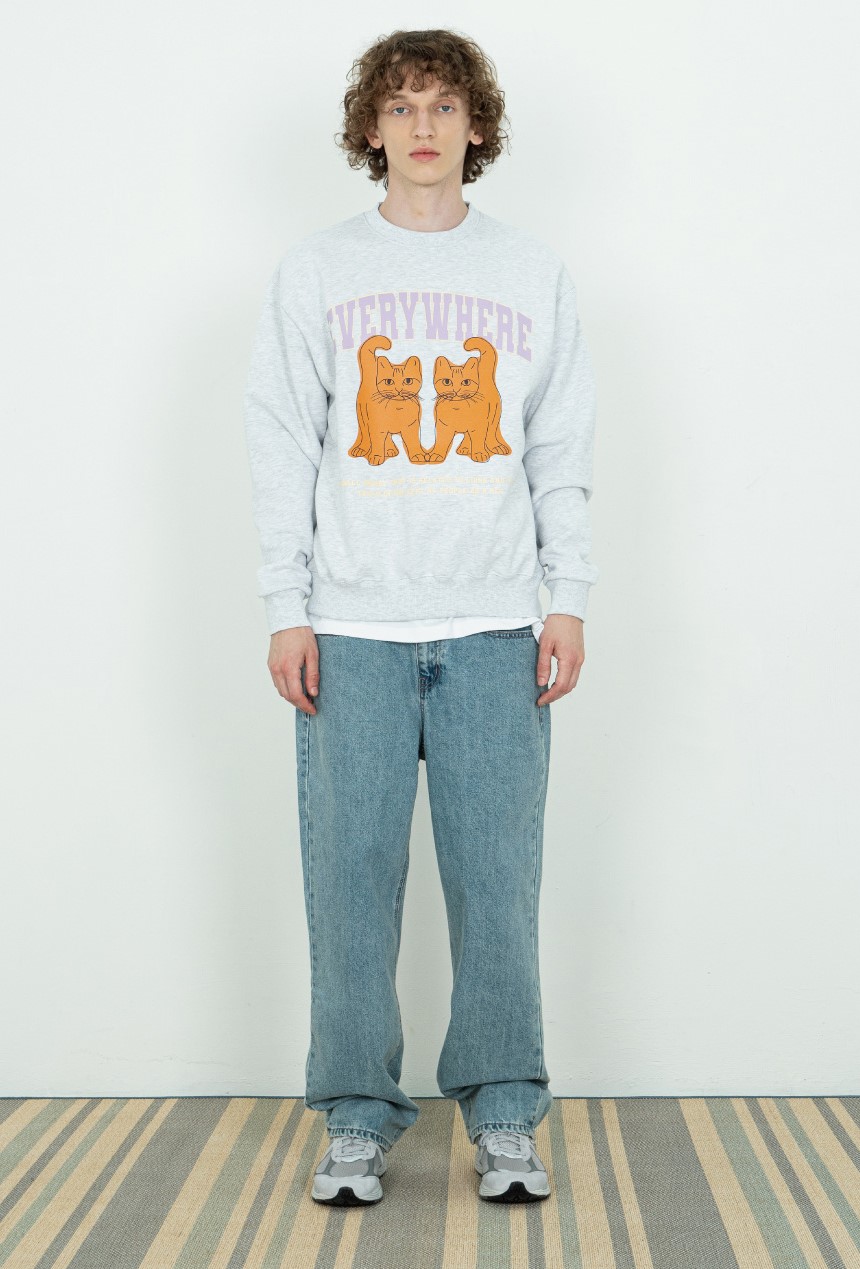 캣 에브리웨어 스웨트 셔츠 백멜란지