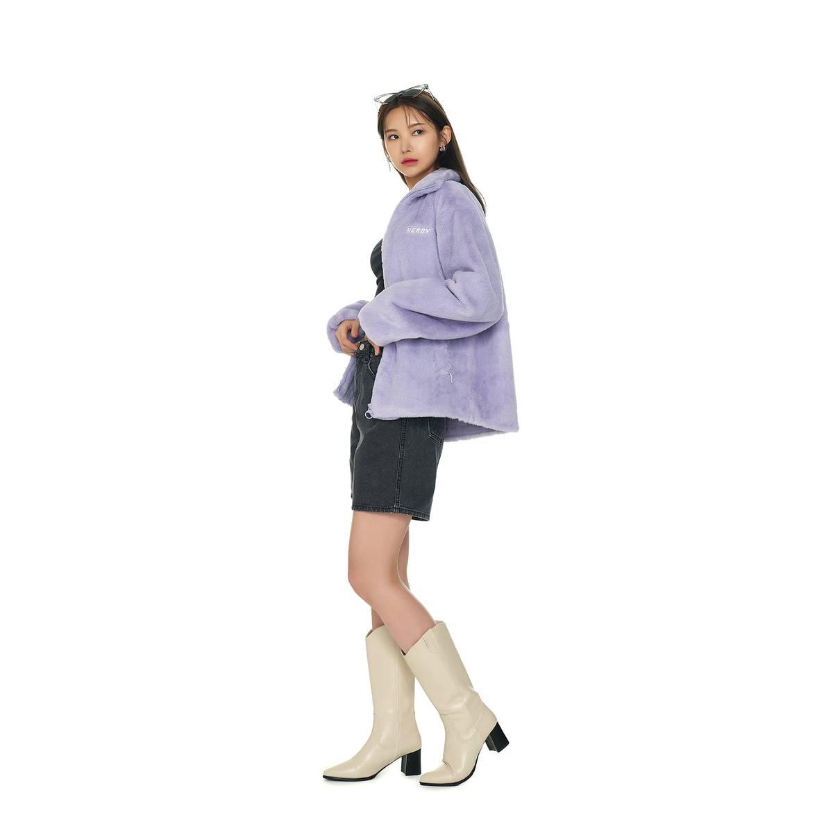 런닝맨 642회 230219 전소민 에코퍼 자켓 옷 패션 브랜드 정보 - 널디 NERDY 뮬리 에코 퍼 자켓 라이트퍼플 300203