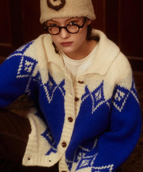 그린버터(GREENBUTTER) Alpaca Dia Jacquard Cardigan (Cobalt) - 219,000 | 무신사 스토어