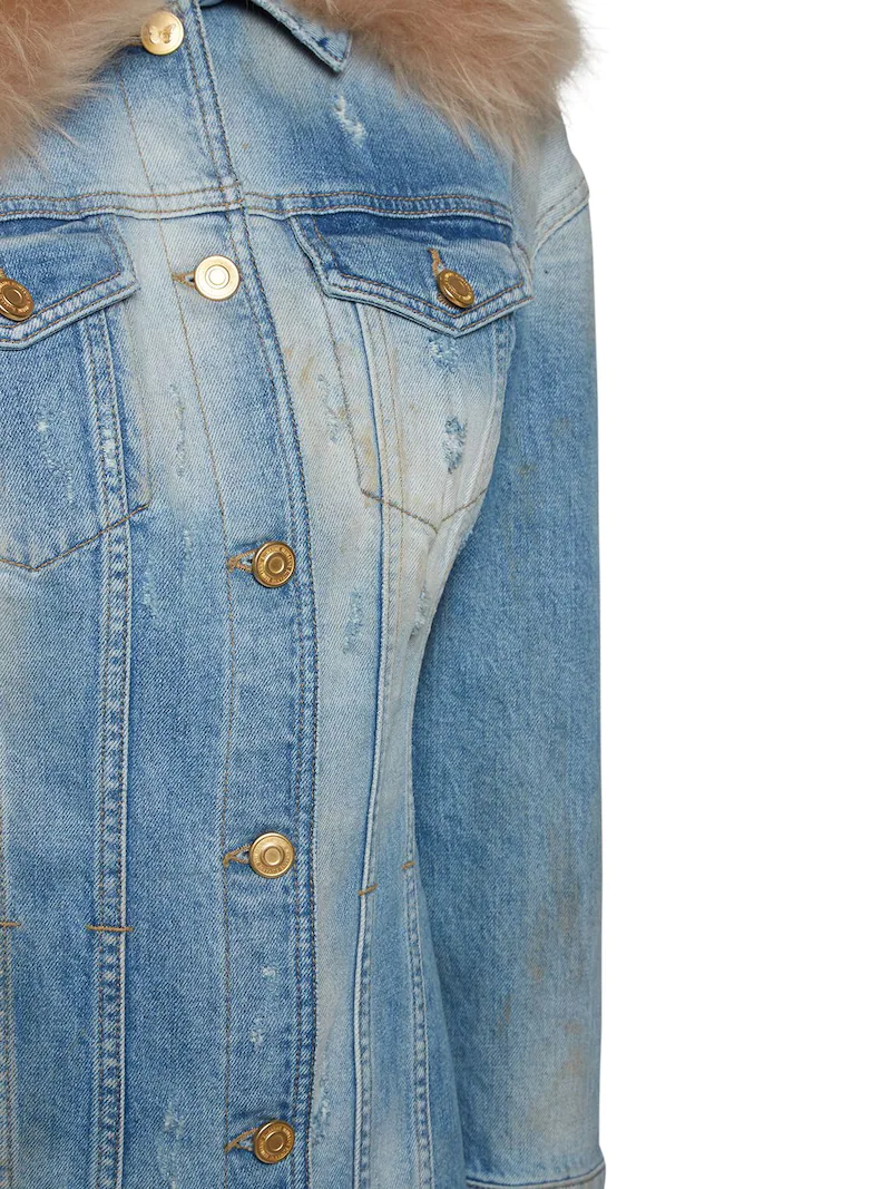 코튼 데님 자켓 w 인조모피 카라 3557802 여성