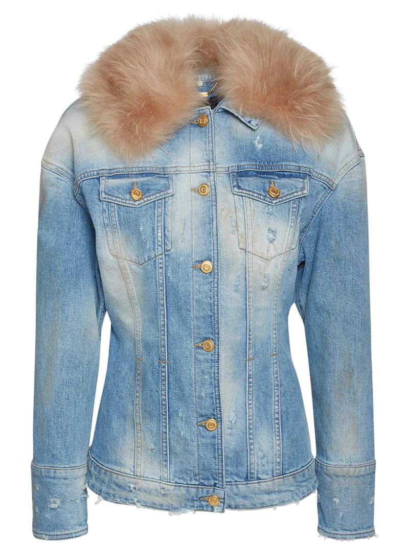 블루마린 코튼 데님 자켓 w/ 인조모피 카라 3557802 여성