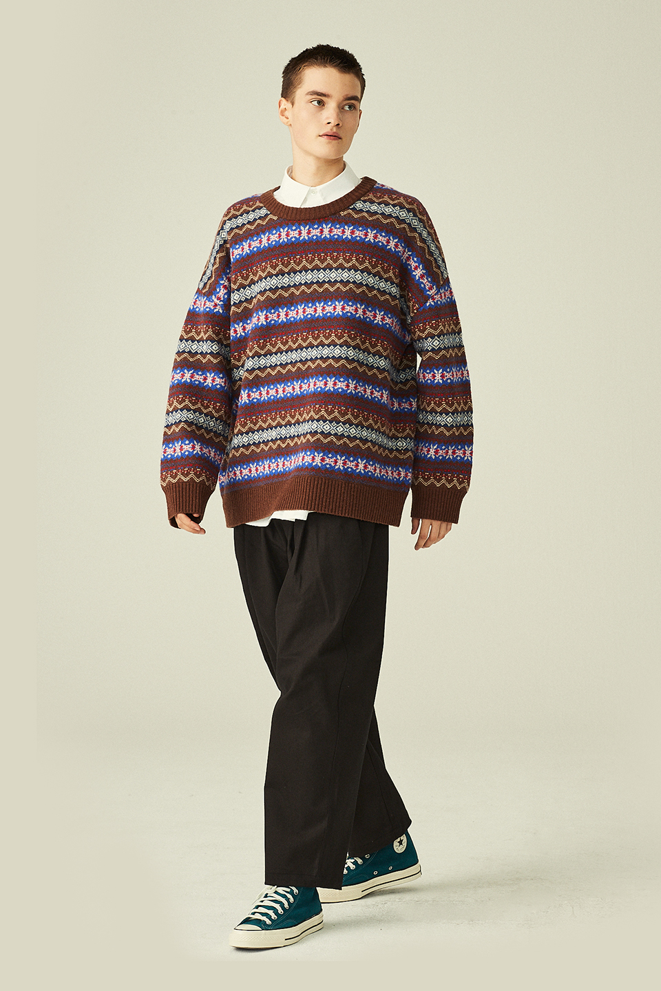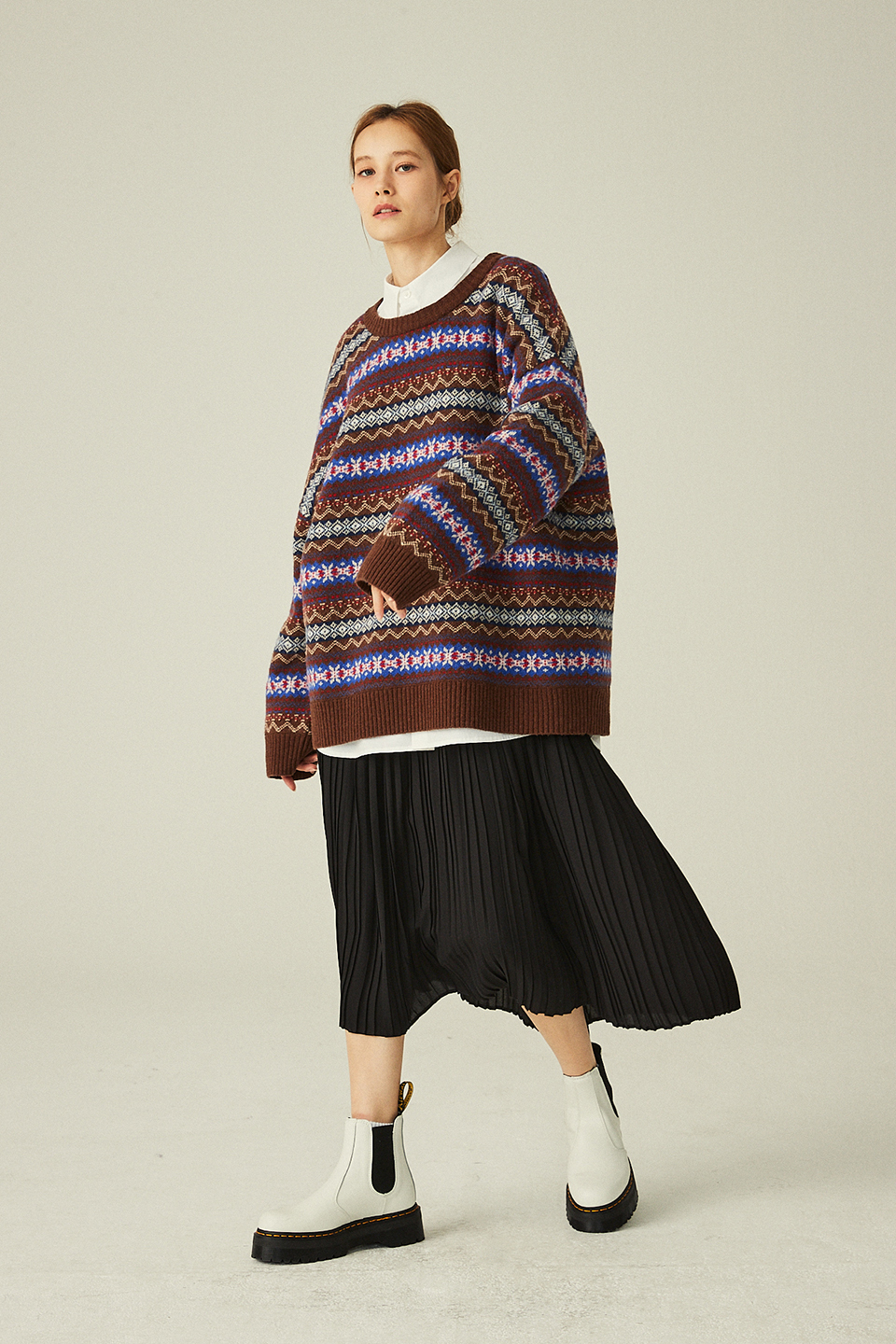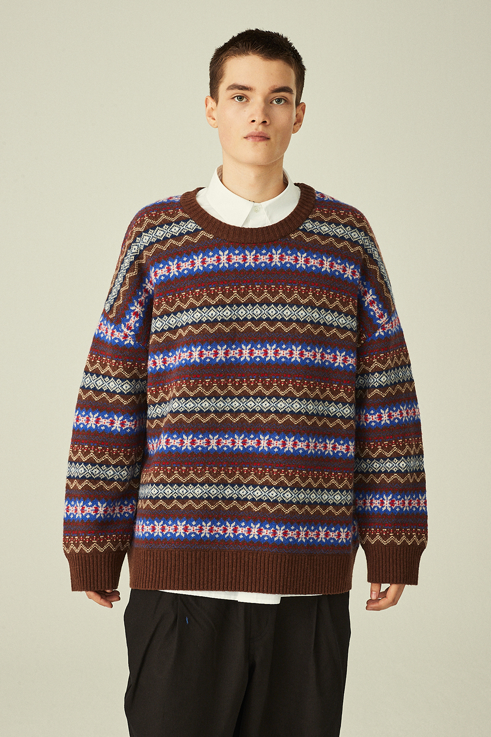 에스닉 자가드 니트 풀오버