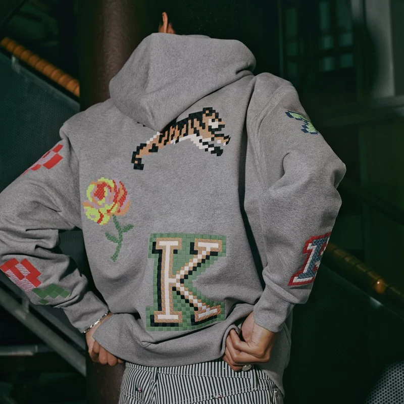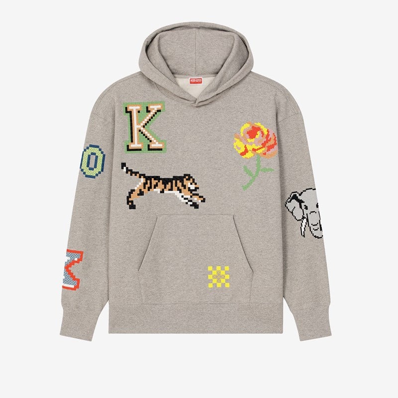 Kenzo Pixel Oversize Hoodie에는 1980년대 컴퓨터 혁명을 연상시키는 "KENZO Pixel" 모티프가 자수되어 있습니다.
