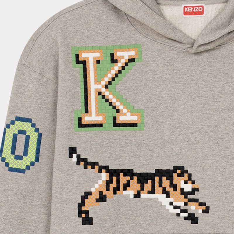 - 겐조 픽셀 오버사이즈 후디 펄 그레이