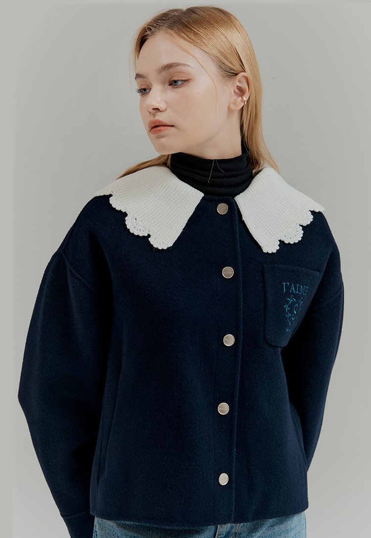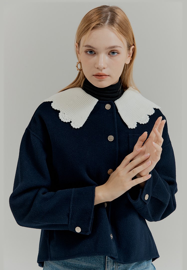 [SATIN] [임수향 착용] 니트카라 포인트 핸드메이드 코트 S224B701 : SATIN