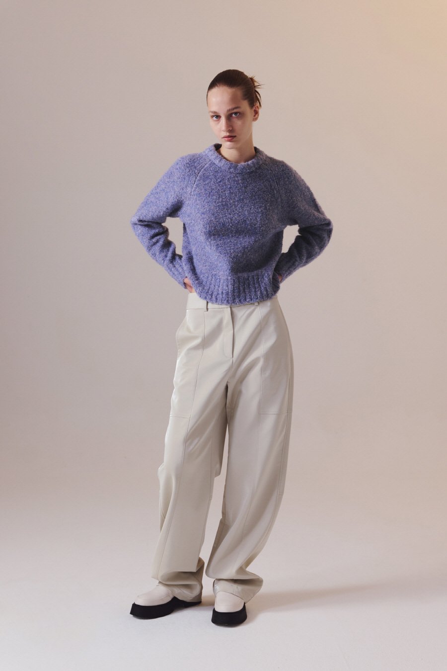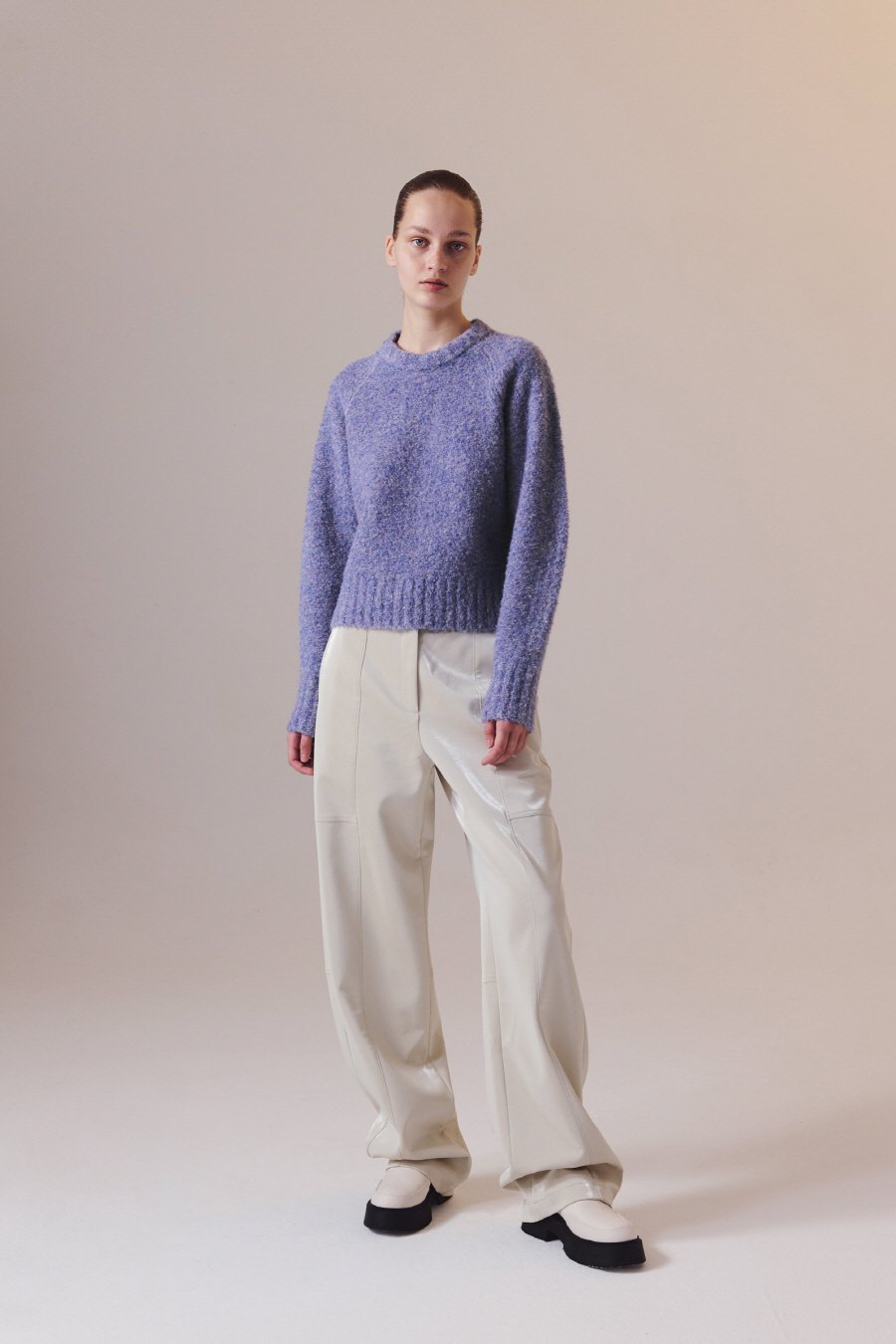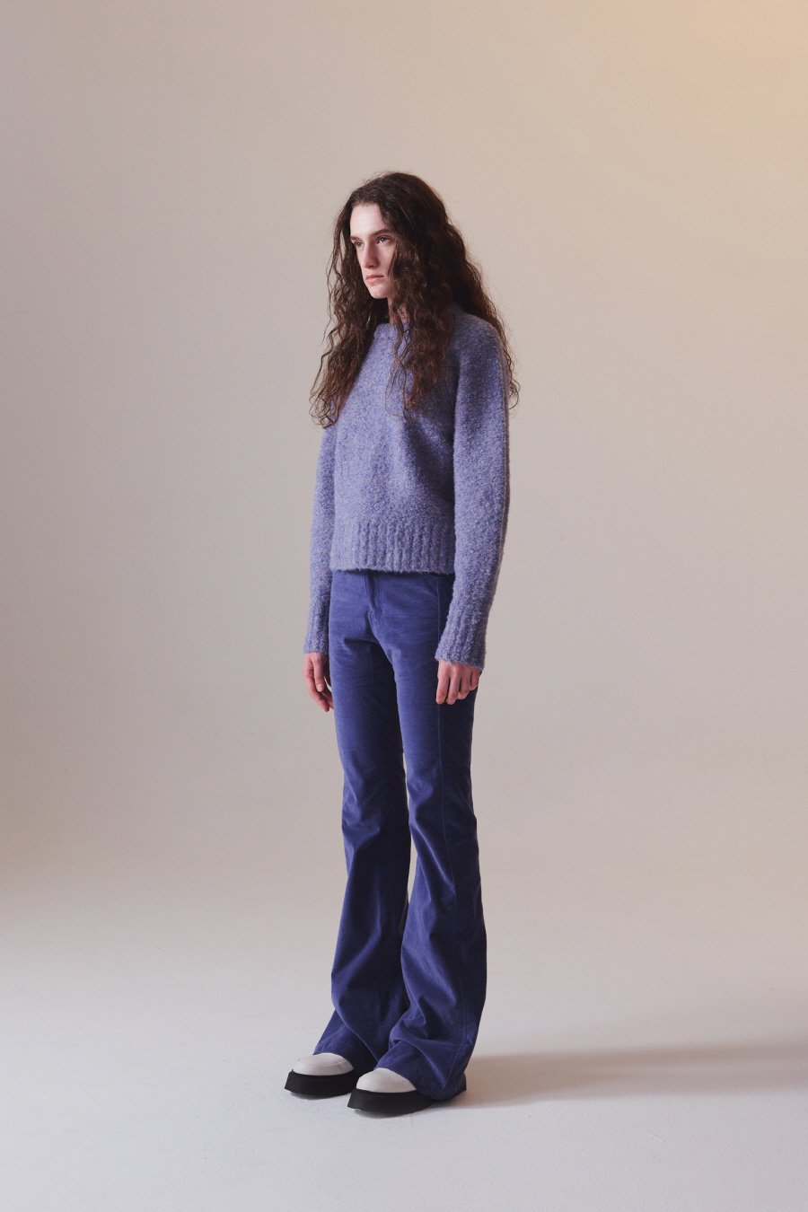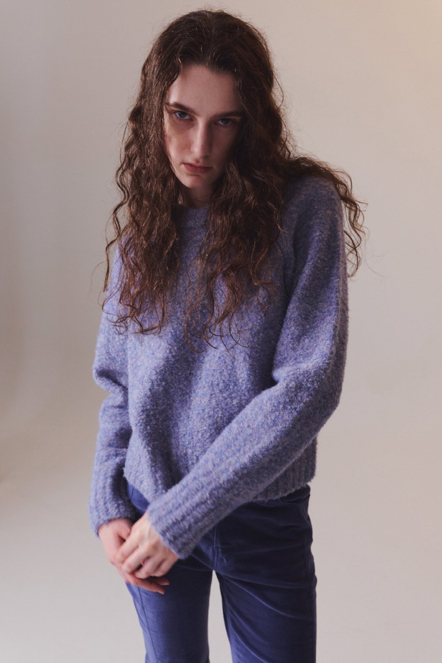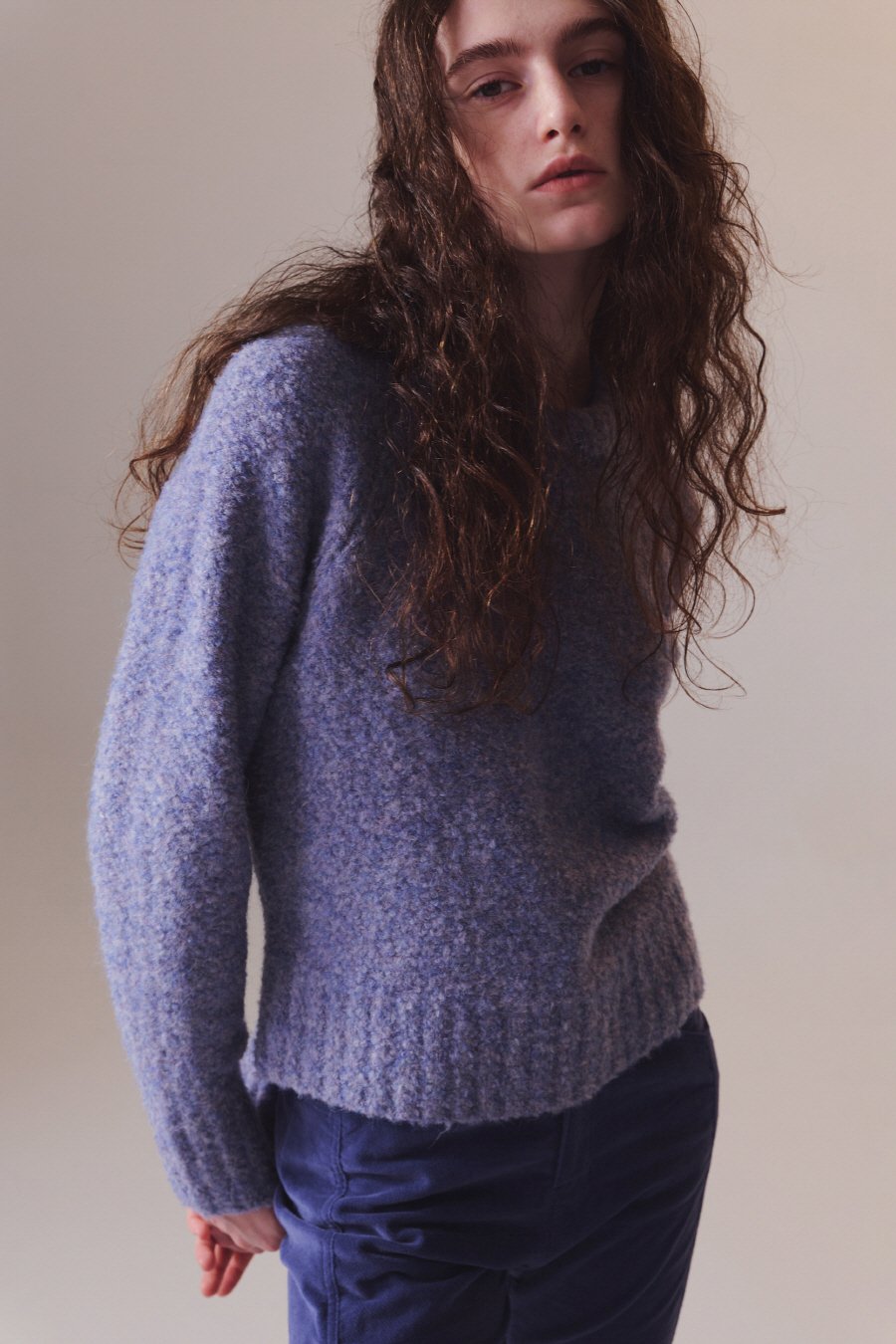 컬러 블랜디드 라운드 니트 LAVENDER BLUE