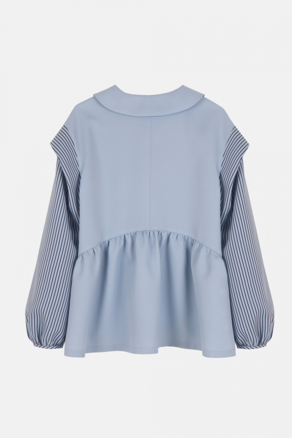 블루 스트라이프 배색 카라 셔츠 블라우스