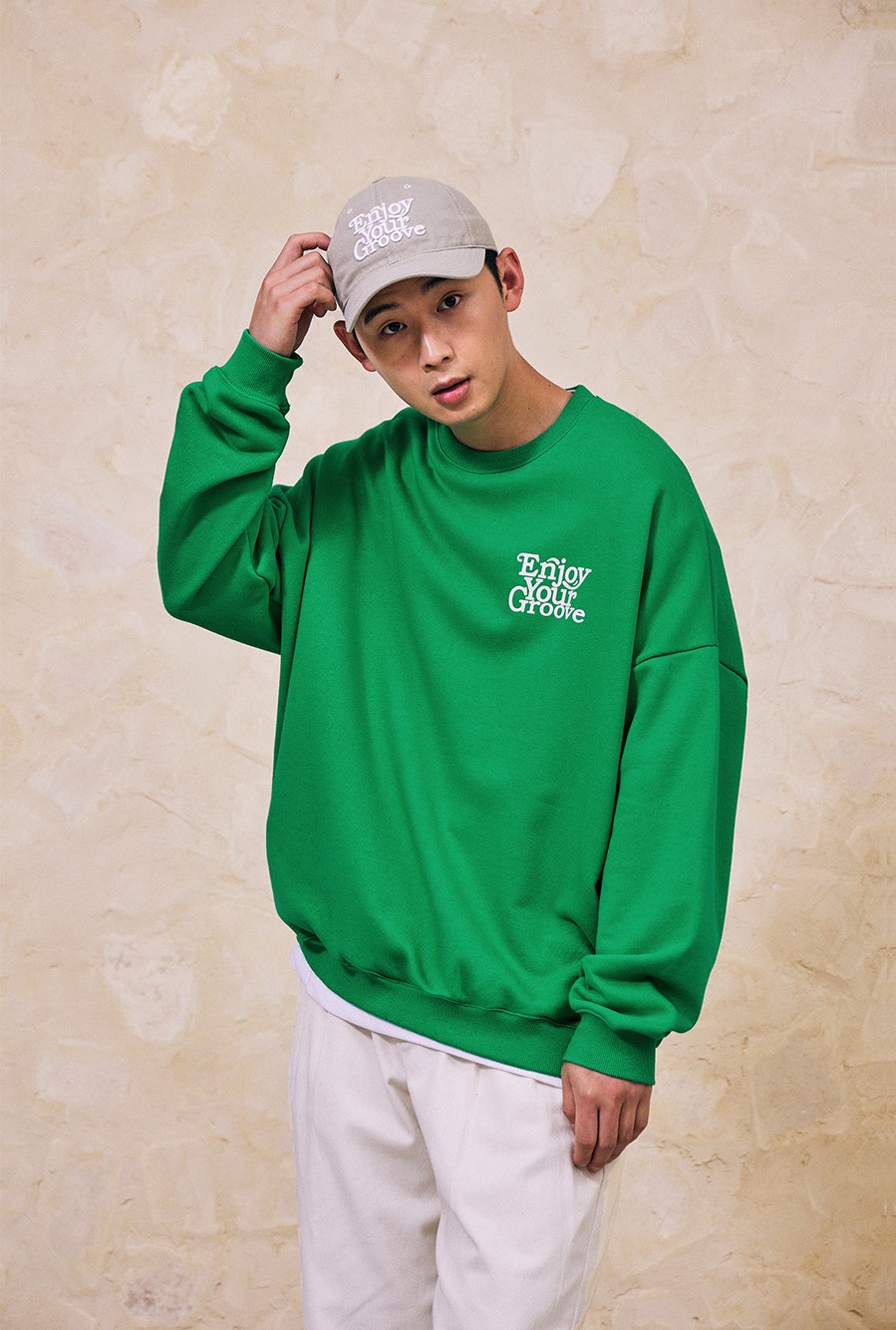 오버핏 그루브 스웨트 셔츠-그린