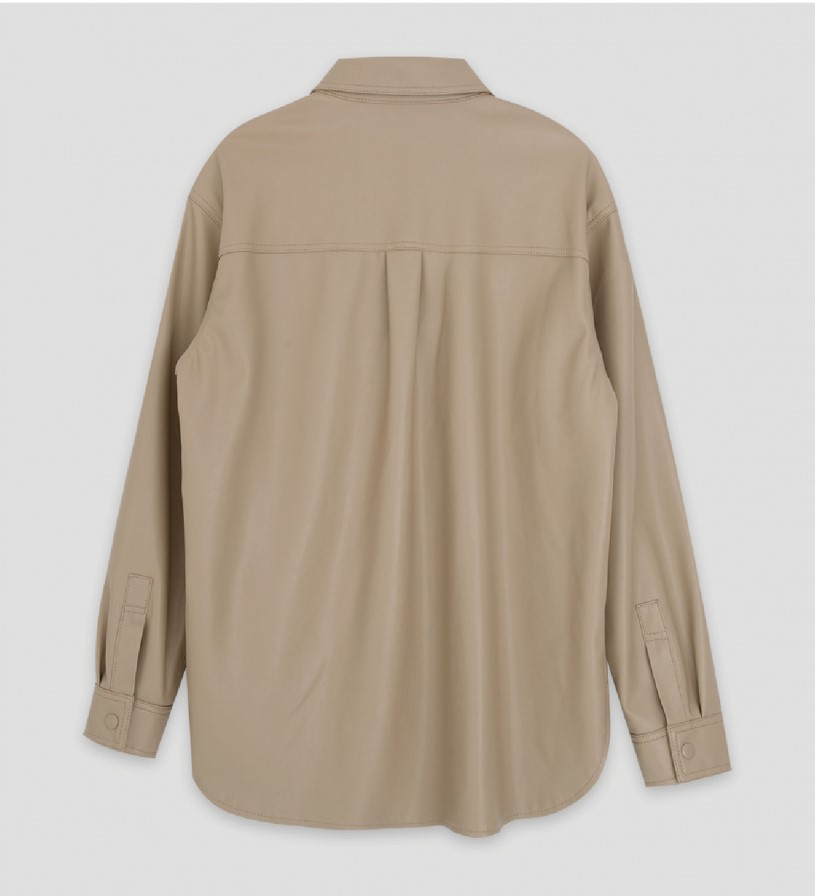 Leather Shirt Jacket Beige