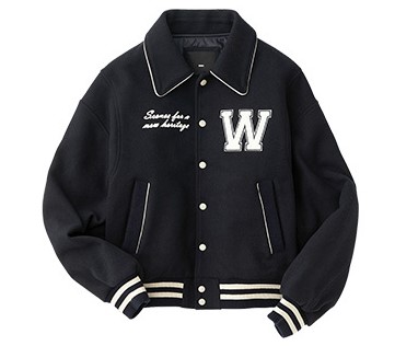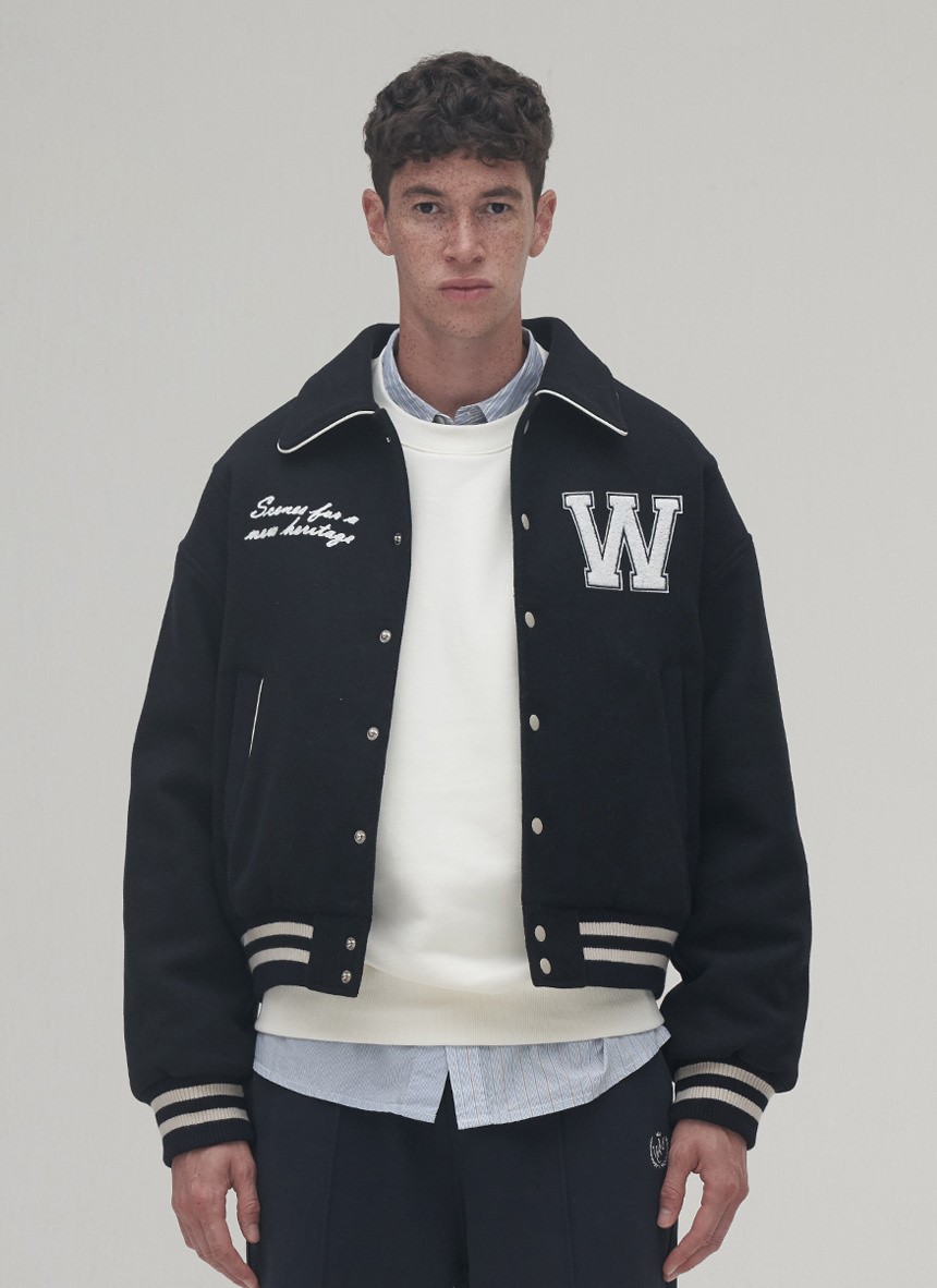클래식한 느낌에 캐주얼한 요소를 더해 완성된 W 보이 클럽 바시티 점퍼