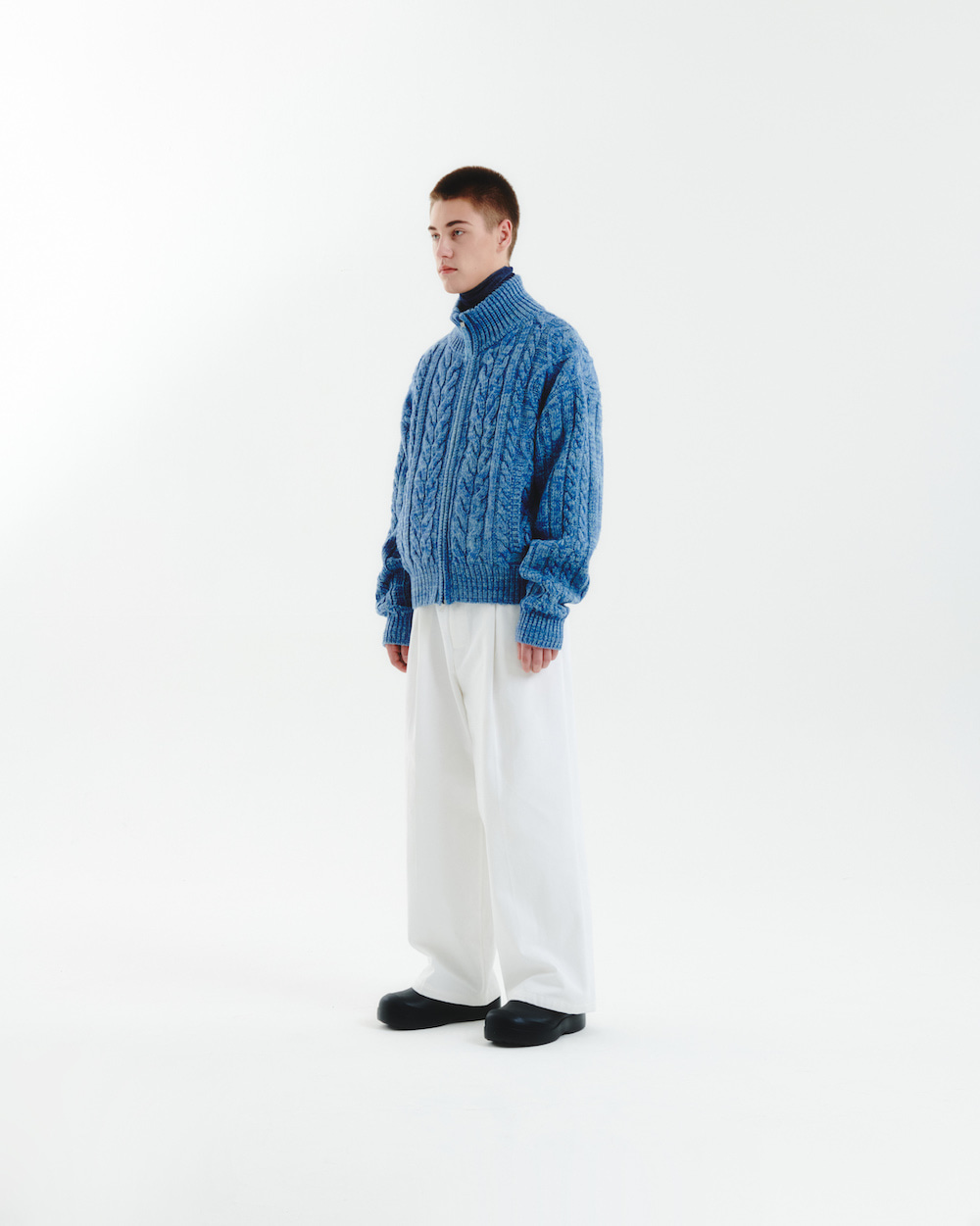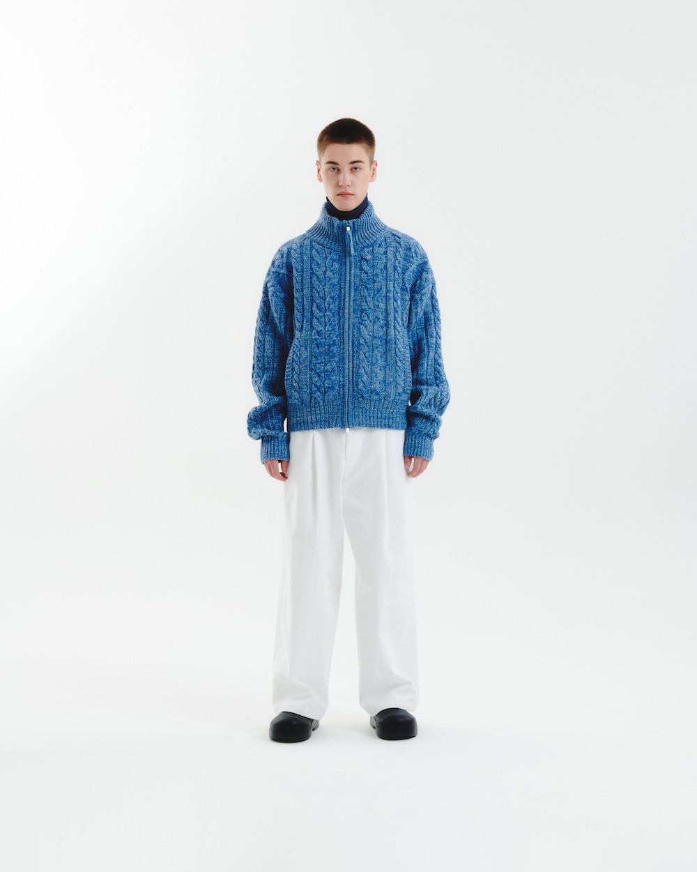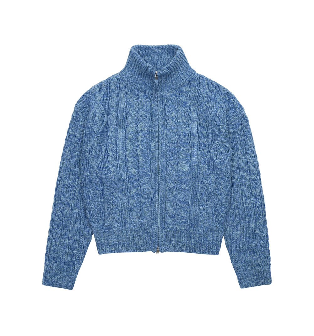 Heavy Cable Varrigated Rib Cardigan_Melange Blue - Floppy Disk Research