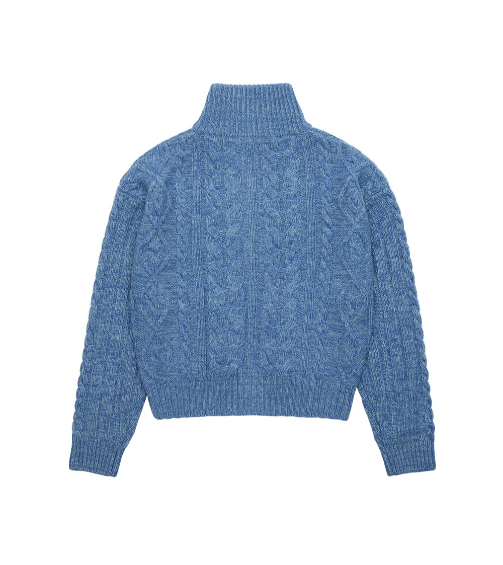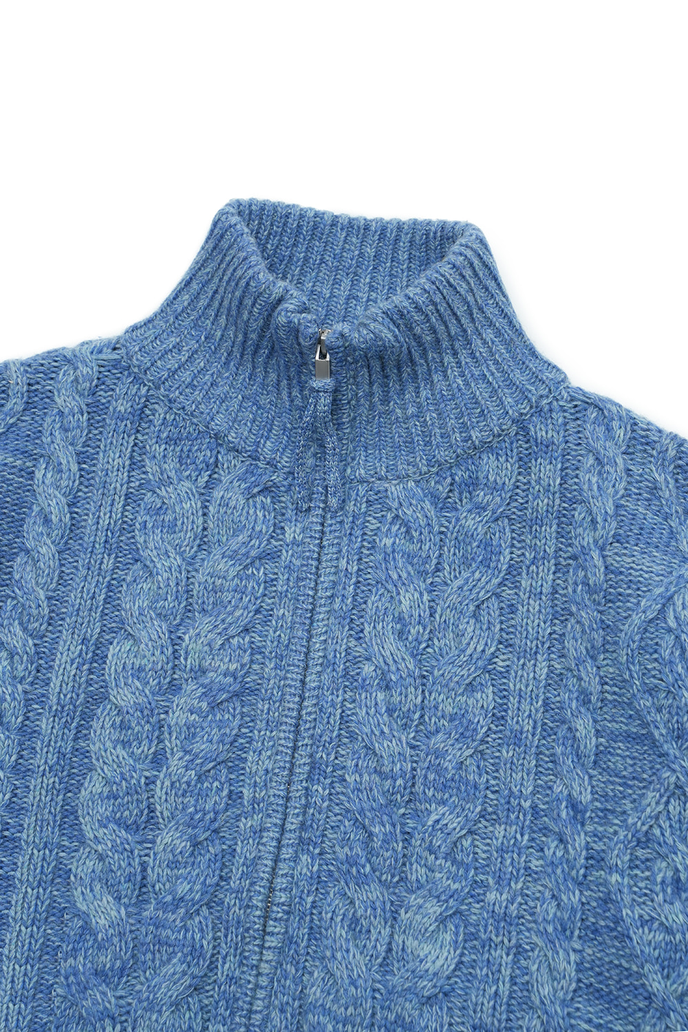 Heavy Cable Varrigated Rib Cardigan_Melange Blue