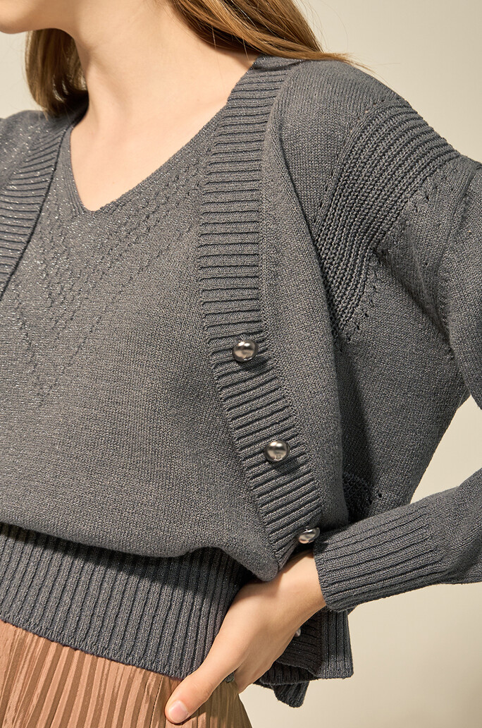 은은하게 반짝거리는 글리터 원사를 섞어 눈길을 끄는 가디건입니다.