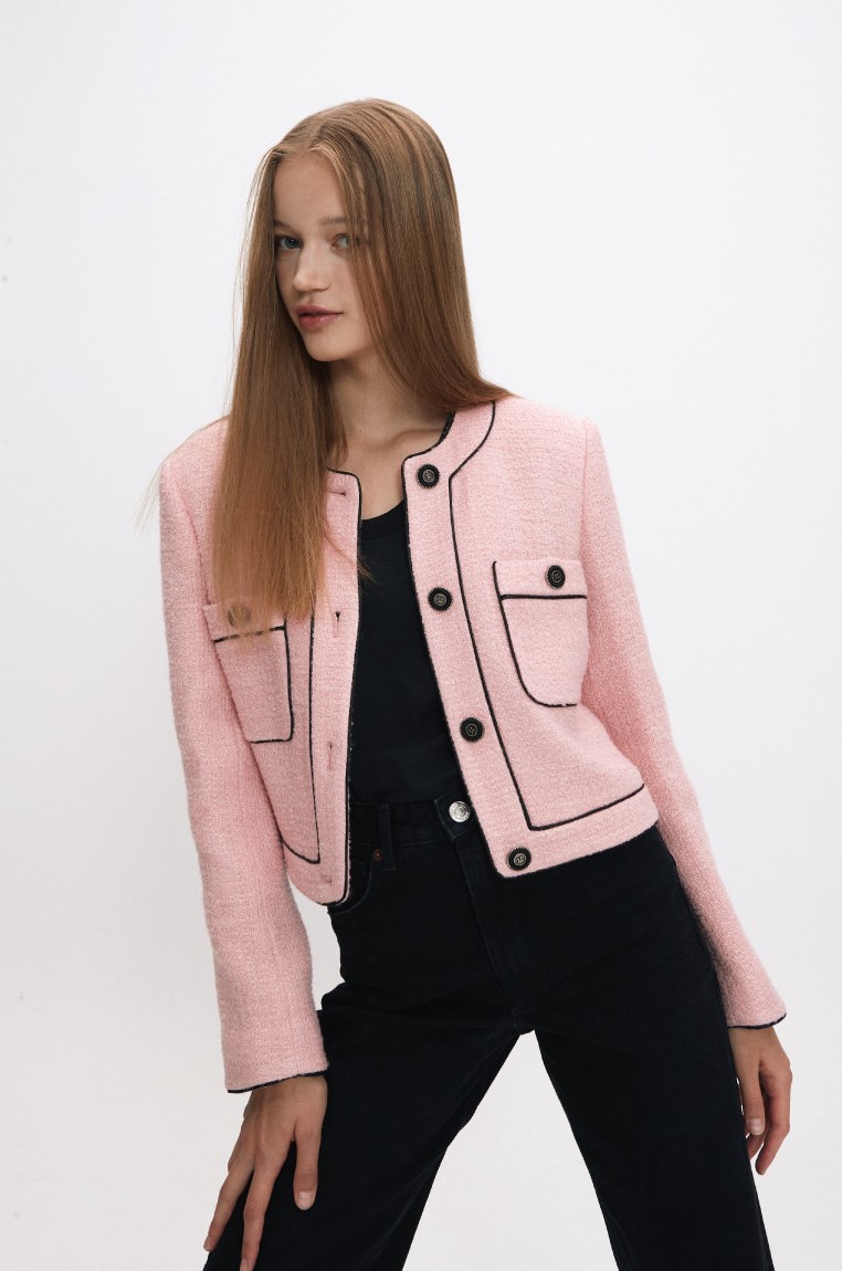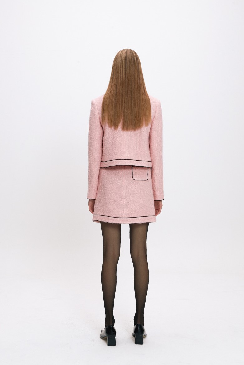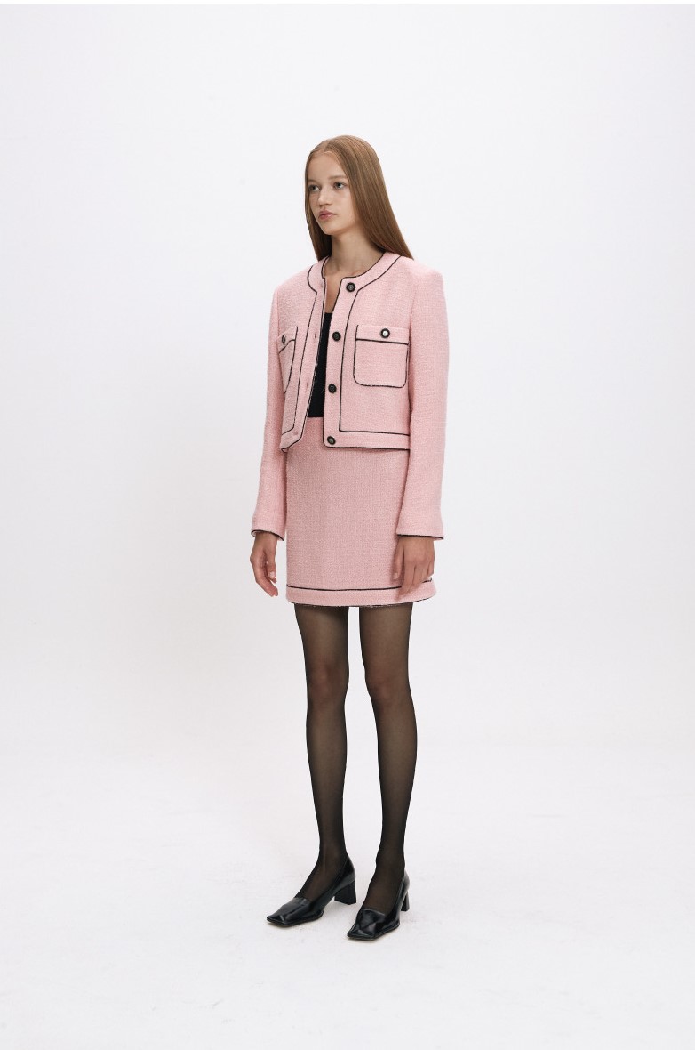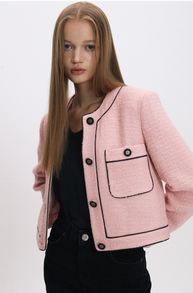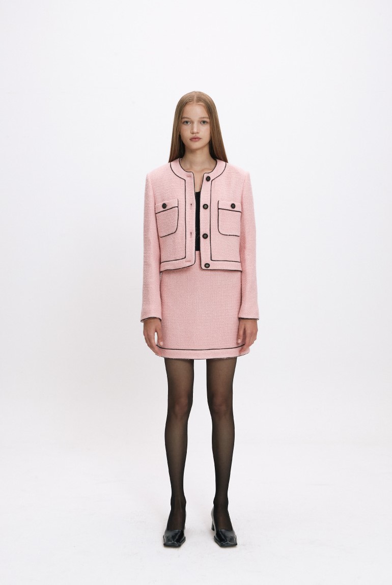 jen tweed 시리즈의 FW버전으로 초겨울까지 착용 가능한 보온성이 더해진 울 소재이며 셑로 코디하거나 단독으로 연출하여 스타일링 가능한 데일리 트위드 자켓