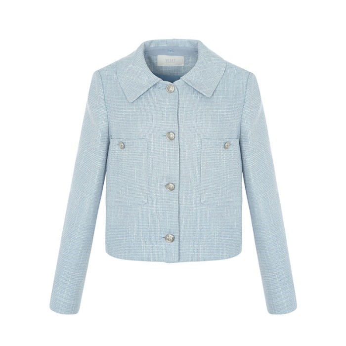 은은한 펄감과 입체감이 느껴지는 트위드 소재 세련된 크롭 기장 재킷