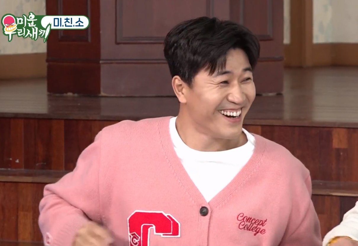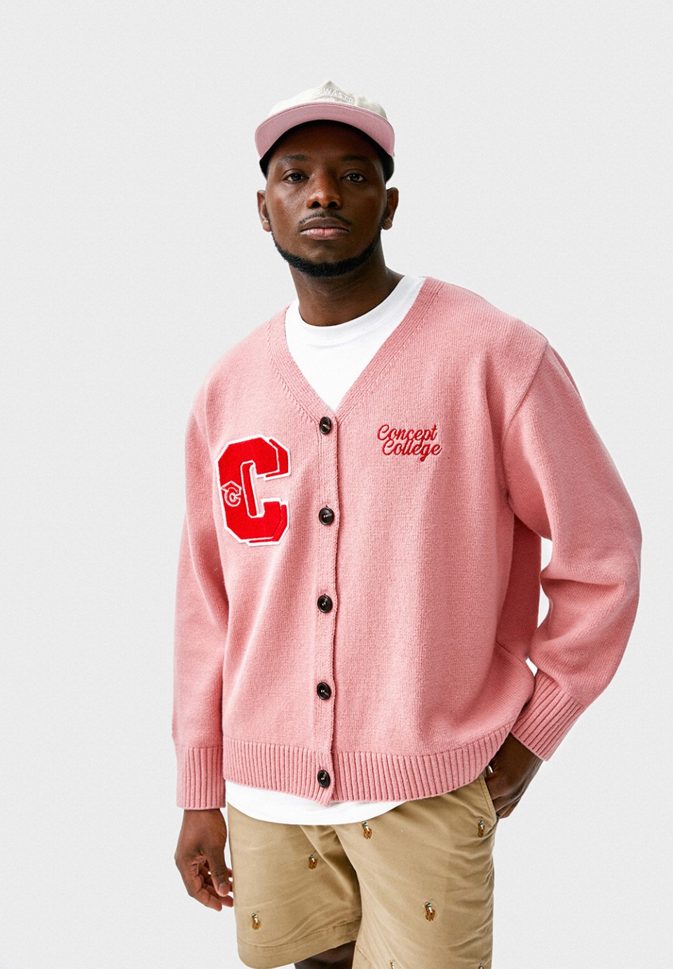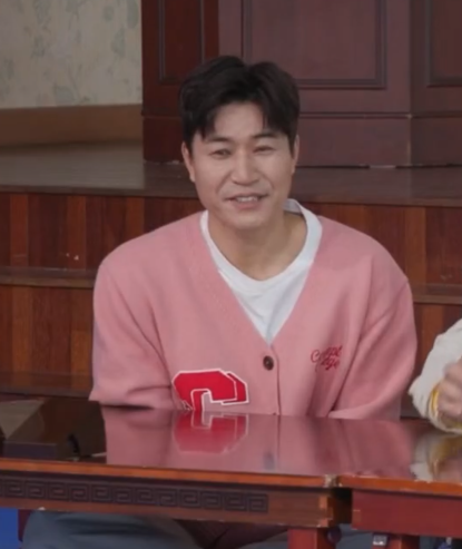 미운 우리 새끼 334회 230312 김종민 핑크 가디건 옷 패션 브랜드 정보 - 컨셉트컬리지 CONCEPTCOLLEGE 더블 빅 C 패치 파스텔 핑크 램스울 니트 가디건 (남녀공용) Double Big C Patch Pastel Pink Lambs Wool Knit Cardigan (for men and women)
