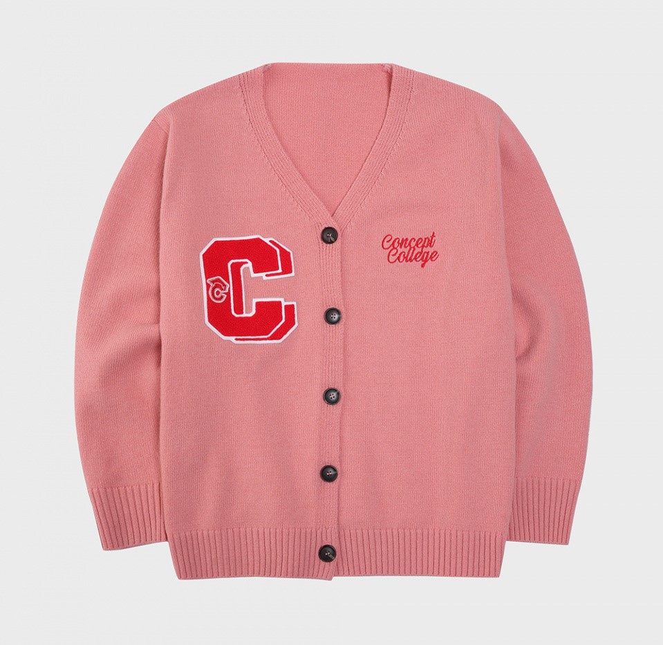 [CONCEPTCOLLEGE][CONCEPT COLLEGE] Double Big C Patch Pastel Pink Lambs Wool Knit Cardigan -