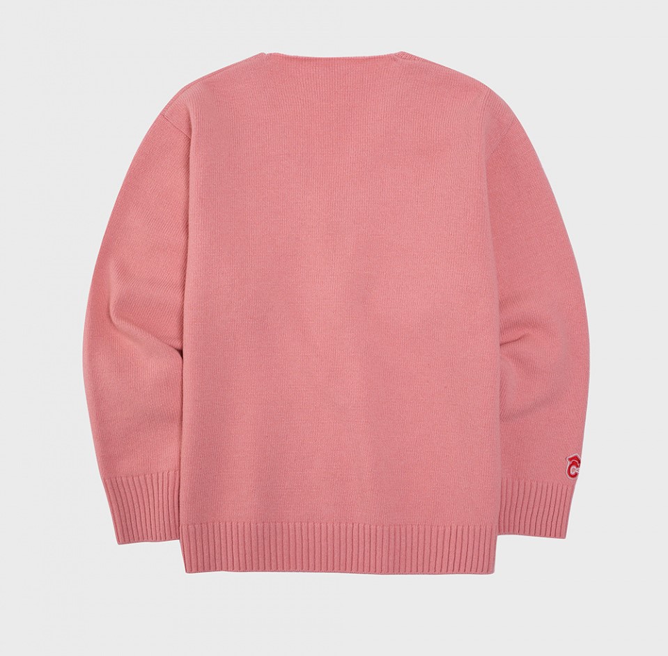 더블 빅 C 패치 파스텔 핑크 램스울 니트 가디건 (남녀공)