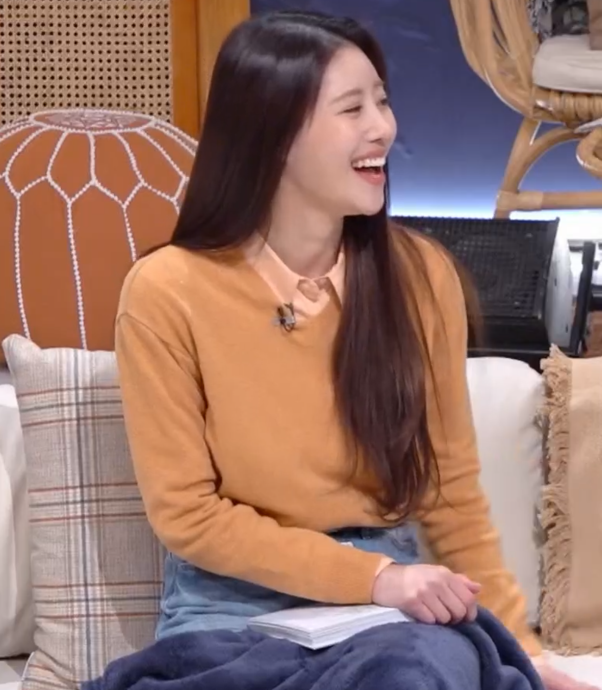 배틀트립2 18회 230311이미주 브이넥 니트 옷 패션 브랜드 정보 - 시눈 SINOON RIBBON LOGO V-NECK KNIT (ORANGE CREAM)