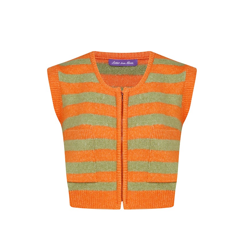 배틀트립2 18회 230311 아이키 니트 베스트 옷 패션 브랜드 정보 - 레터프롬문 LETTER FROM MOON Pixcel Stripe Knit Zip-up (Orange)