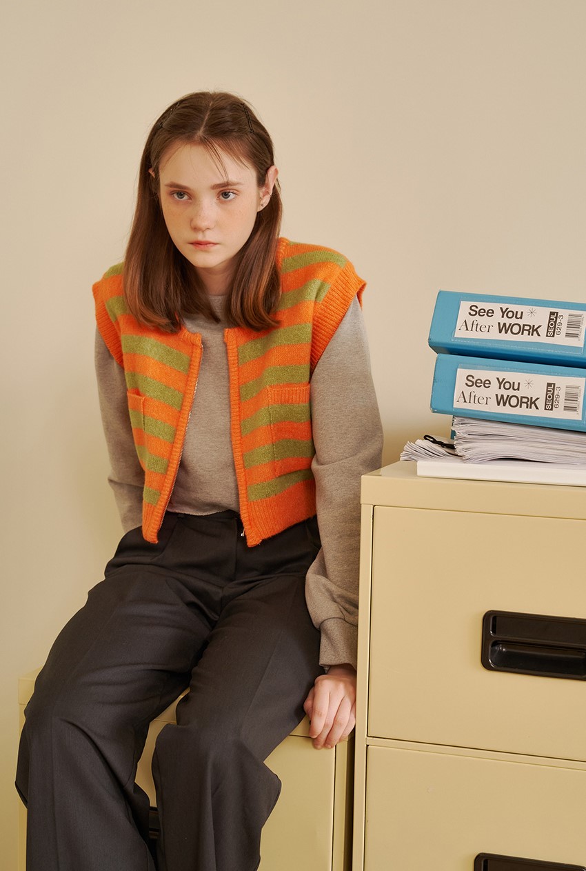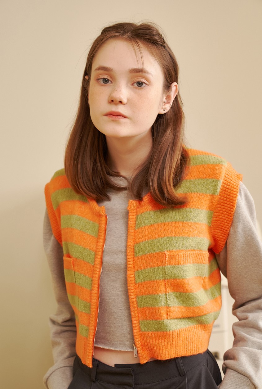스트라이프 패턴으로 제작된 니트 베스트 입니다.