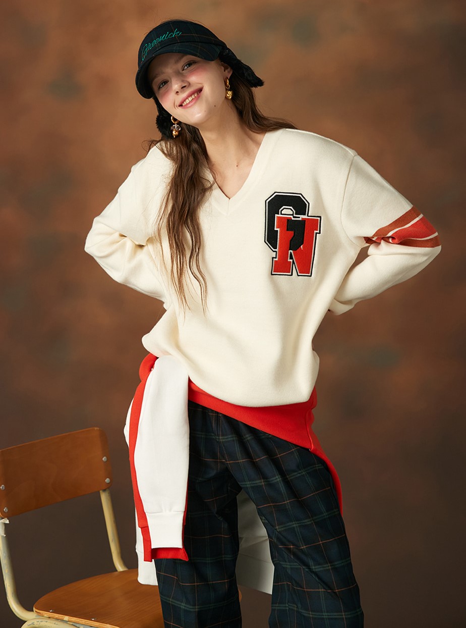그리니치(GREENICH) 라이닝 브이넥 니트 풀오버_아이보리 - 228,000 | 무신사 스토어