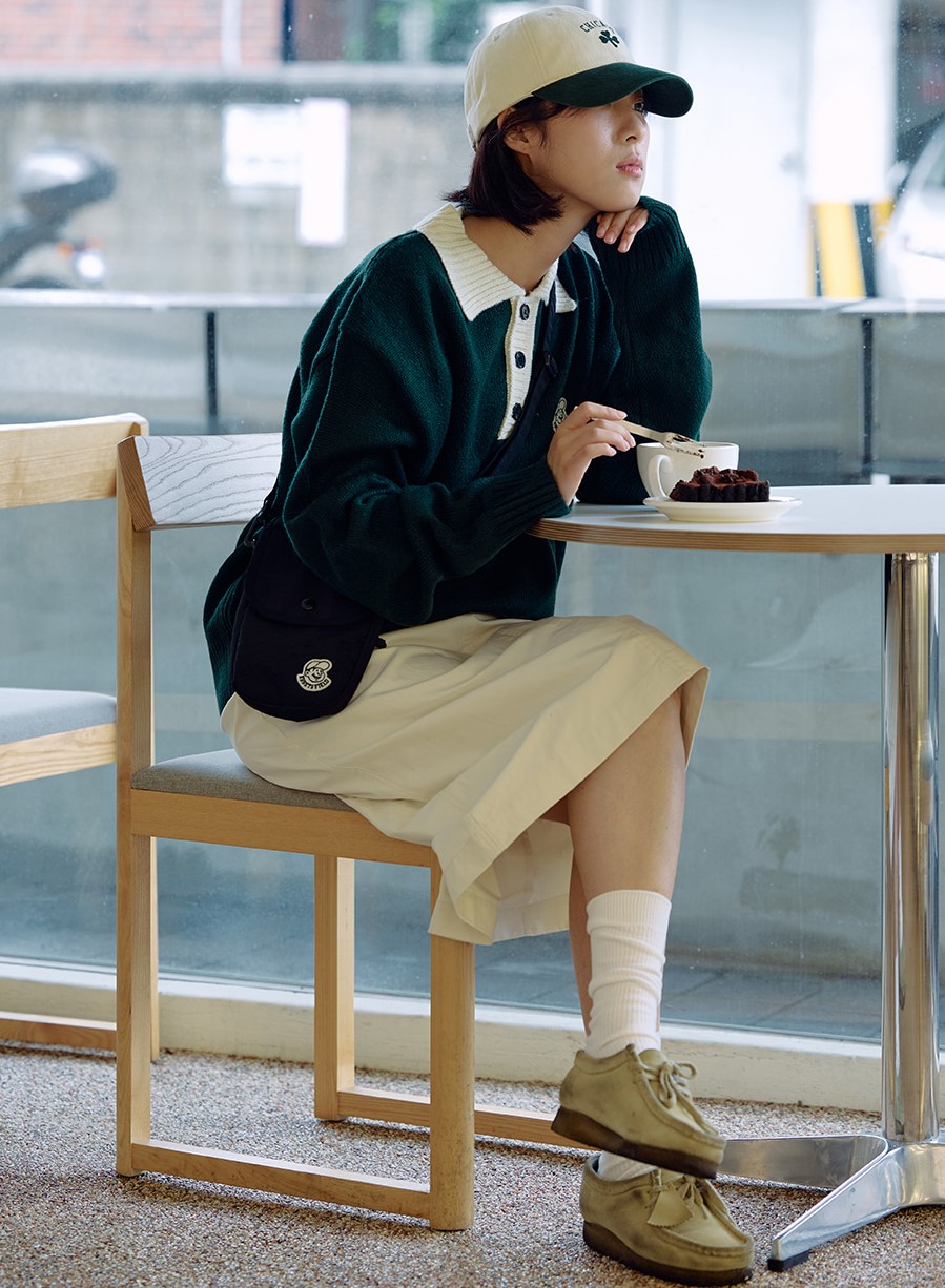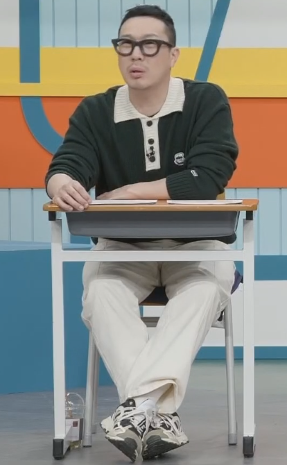 고딩엄빠3 9회 230315 하하 카라 배색 니트 옷 패션 브랜드 정보 - 이벳필드 EBBETSFIELD 베츠 카라 배색 니트 다크그린