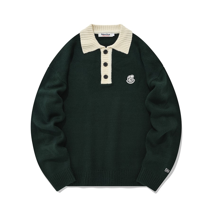 이벳필드(EBBETSFIELD) 베츠 카라 배색 니트 다크그린 - 44,500 | 무신사 스토어