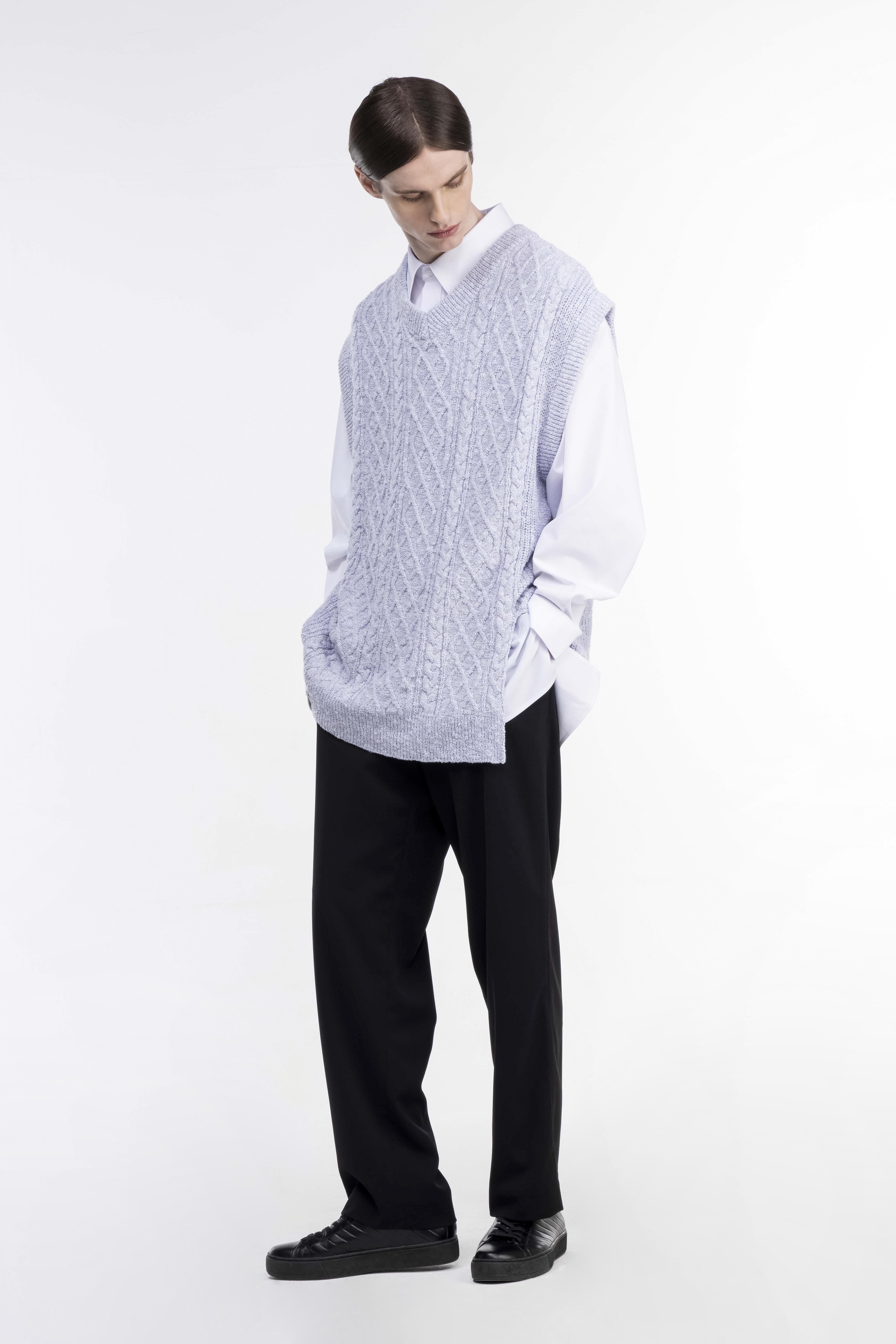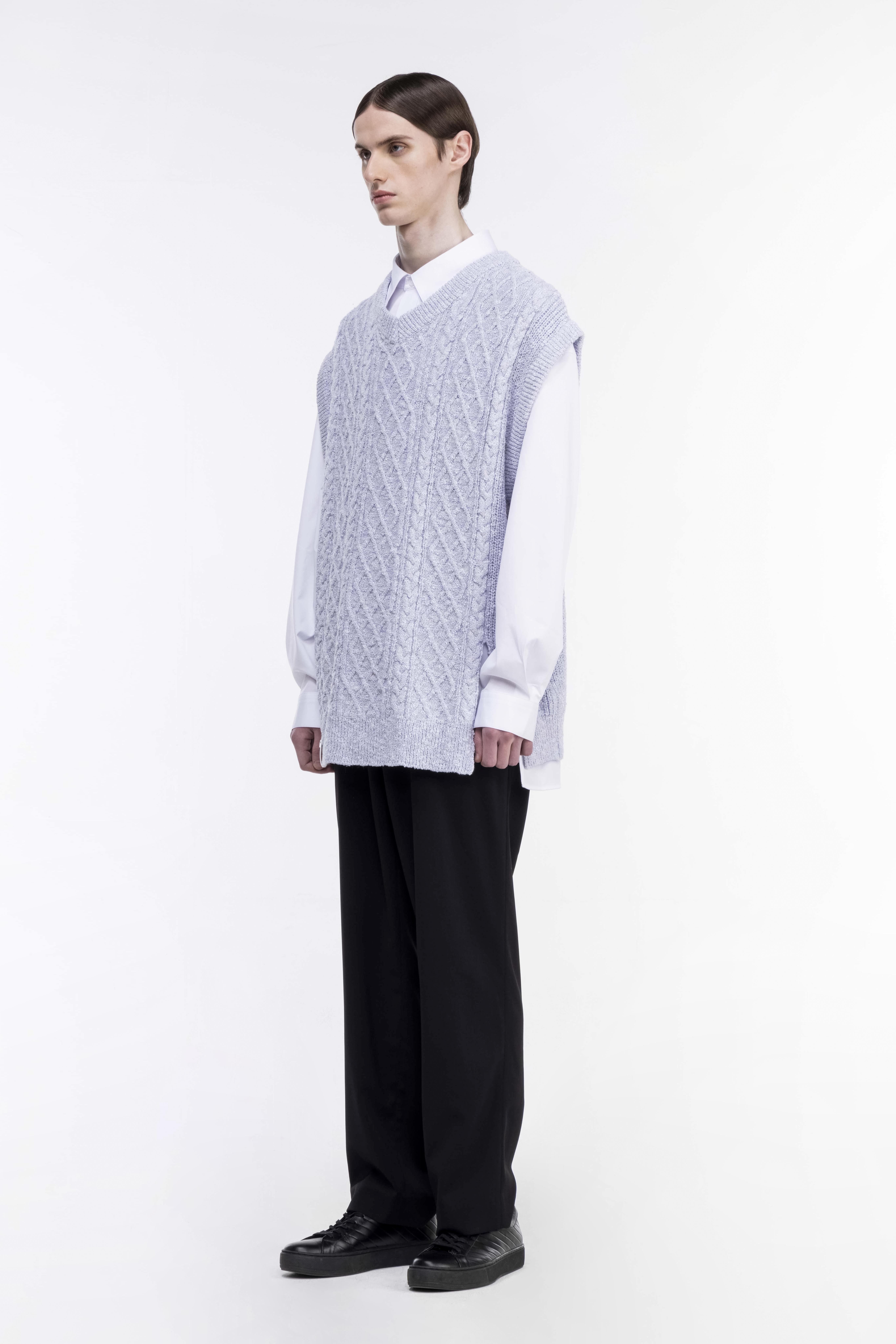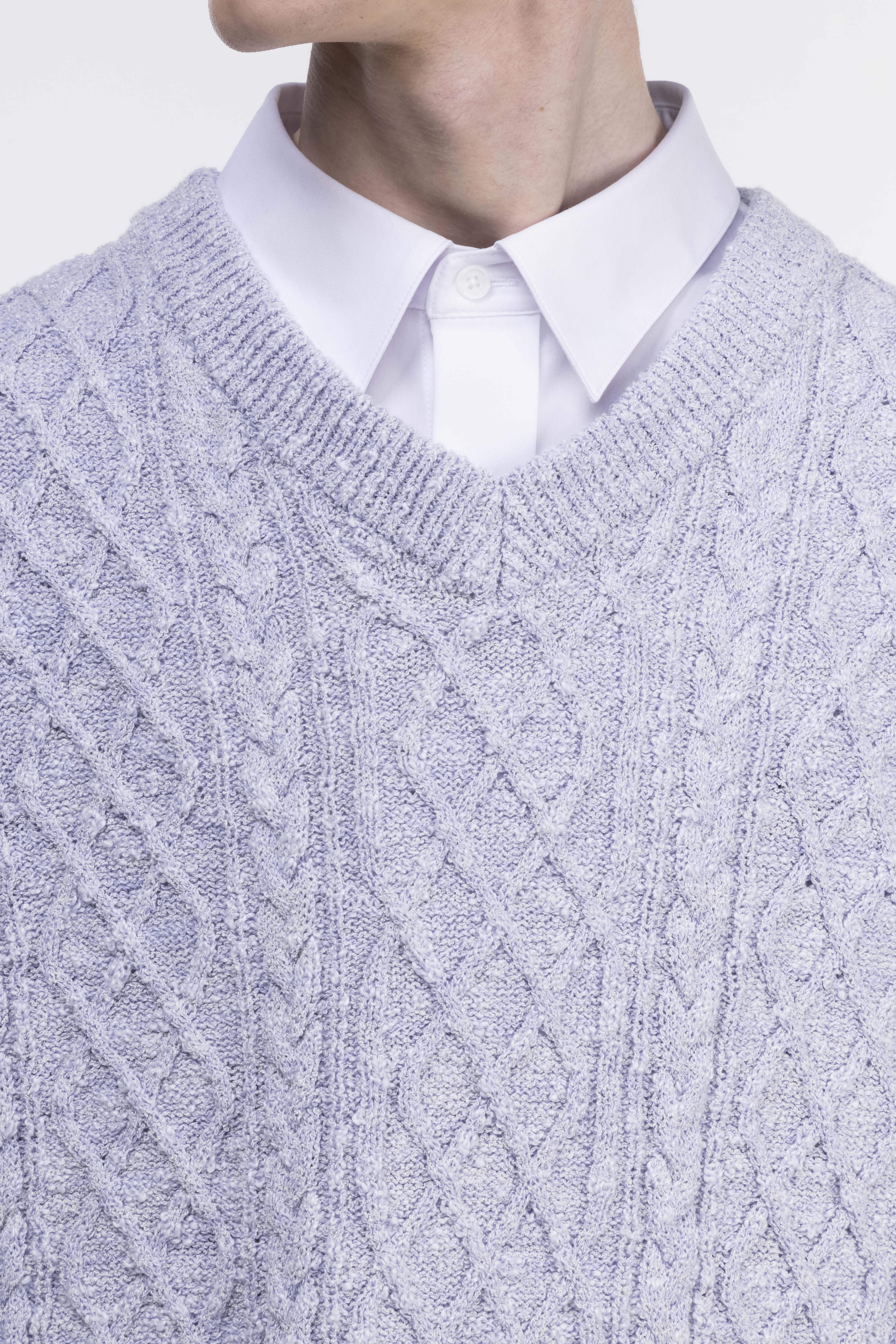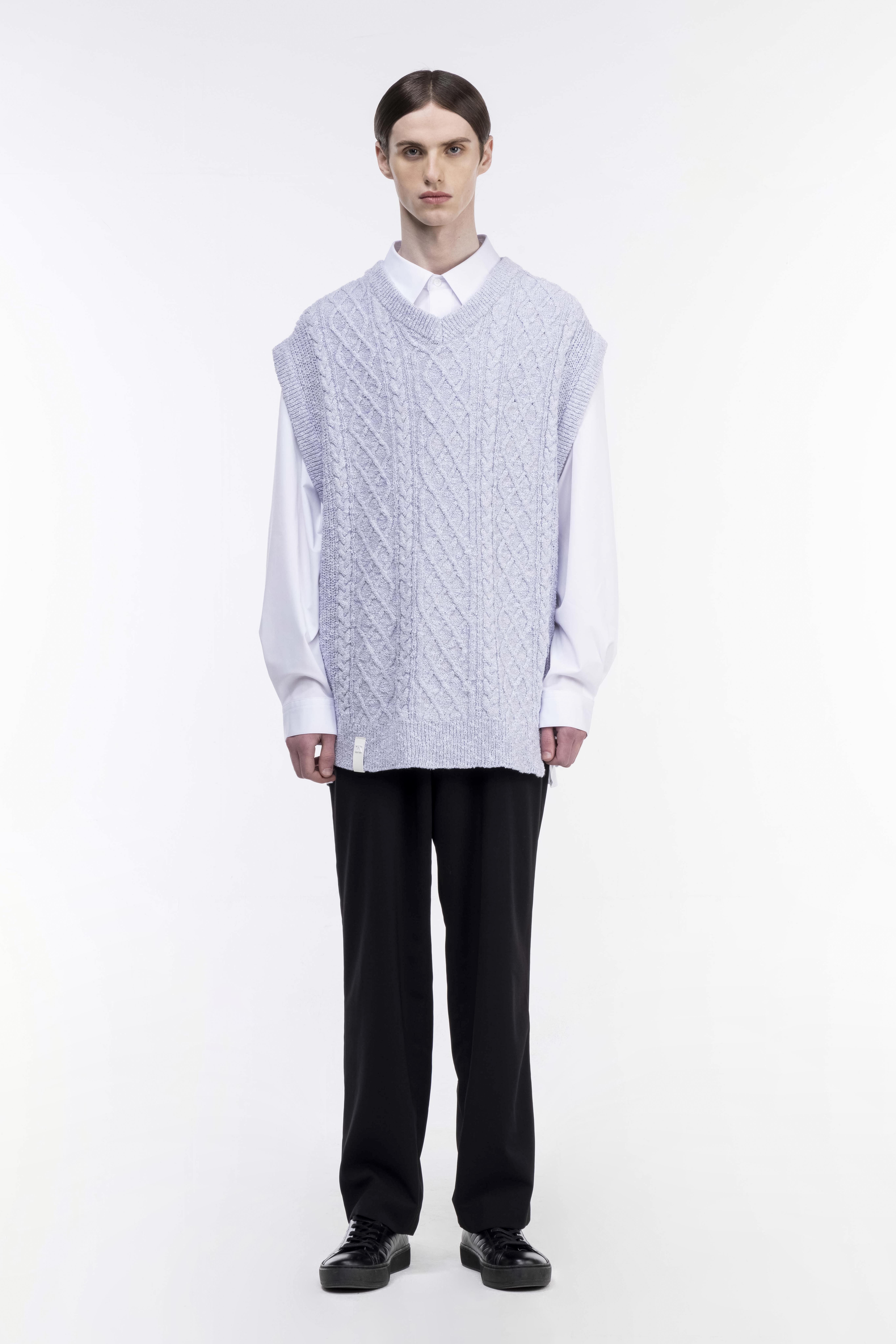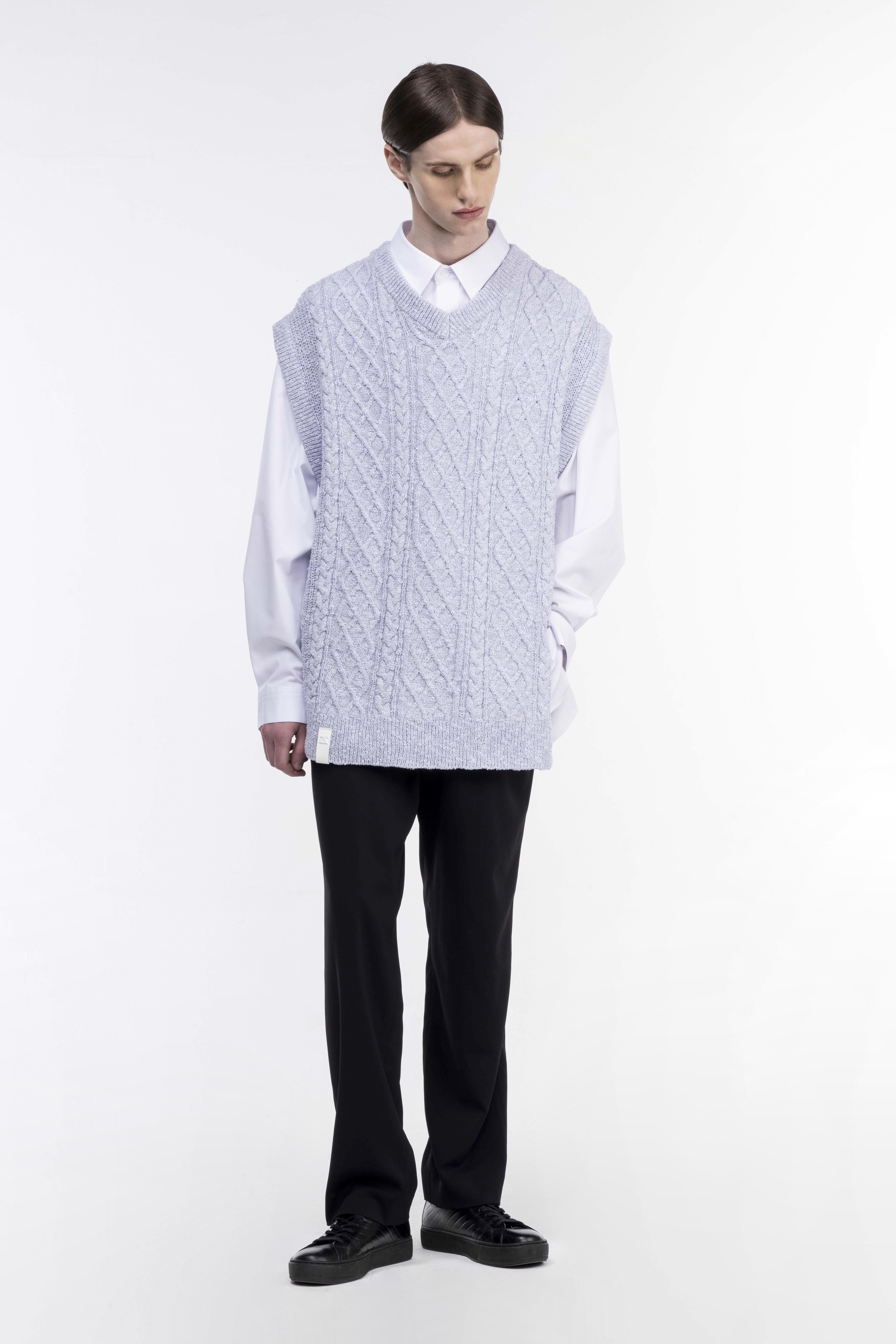 투톤 케이블 브이넥 베스트 퍼플 TWO-TONE CABLE V-NECK VEST PURPLE