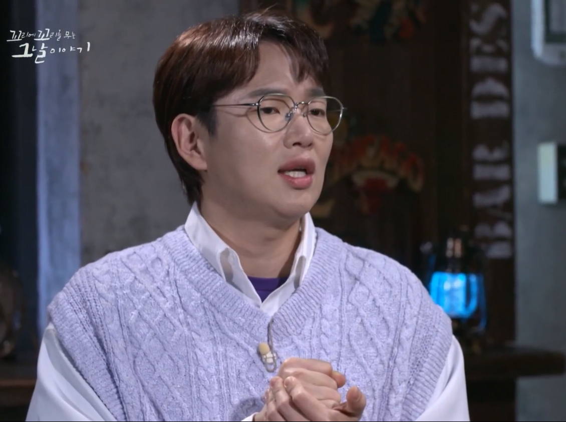꼬리에 꼬리를 무는 그날 이야기 70회 장성규 투톤 케이블 브이넥 베스트 옷 패션 브랜드 정보 - 지오송지오 ZIOSONGZIO TWO-TONE CABLE V-NECK VEST PURPLE