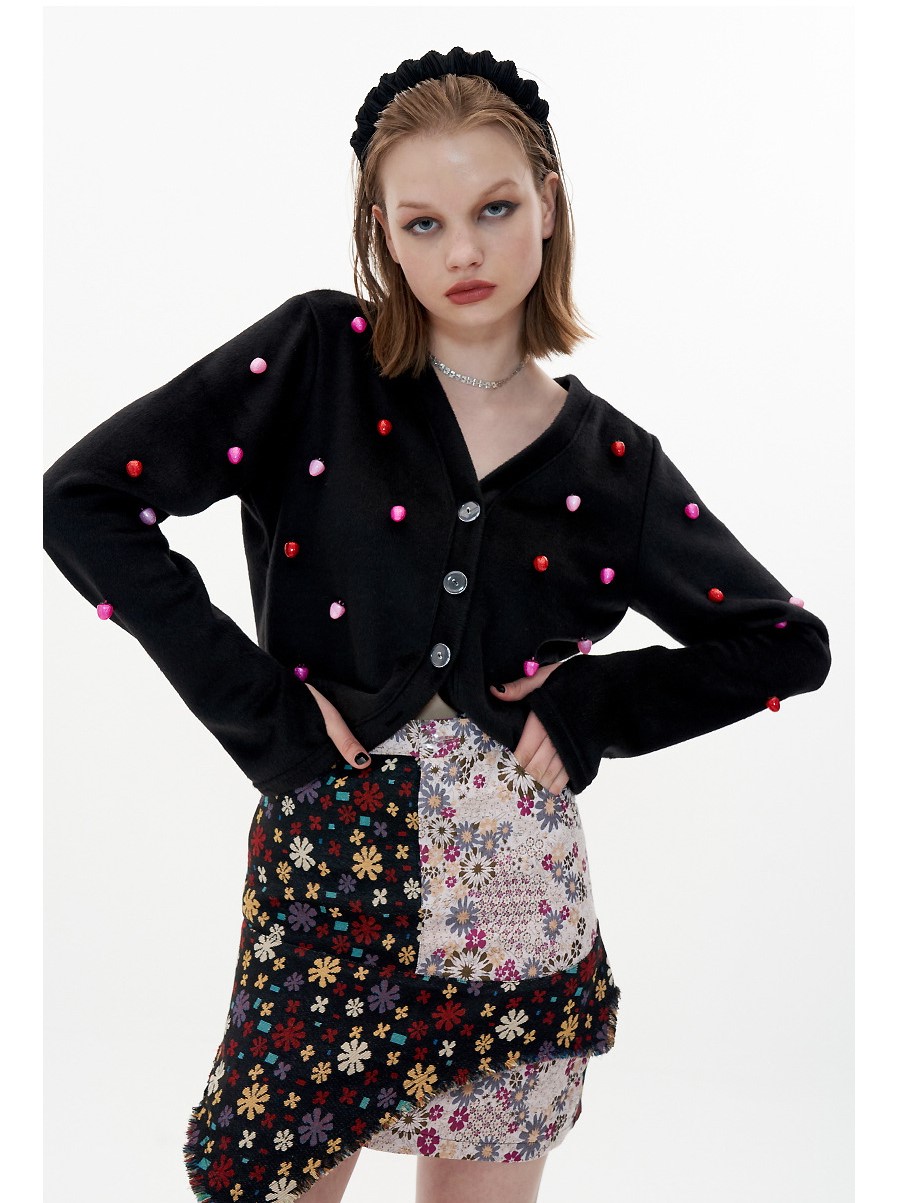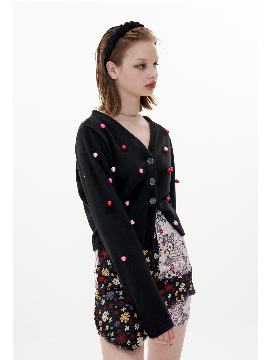 [OTHER-worldly 아더월들리] Finger Hole Strawberry Cardigan [Black]