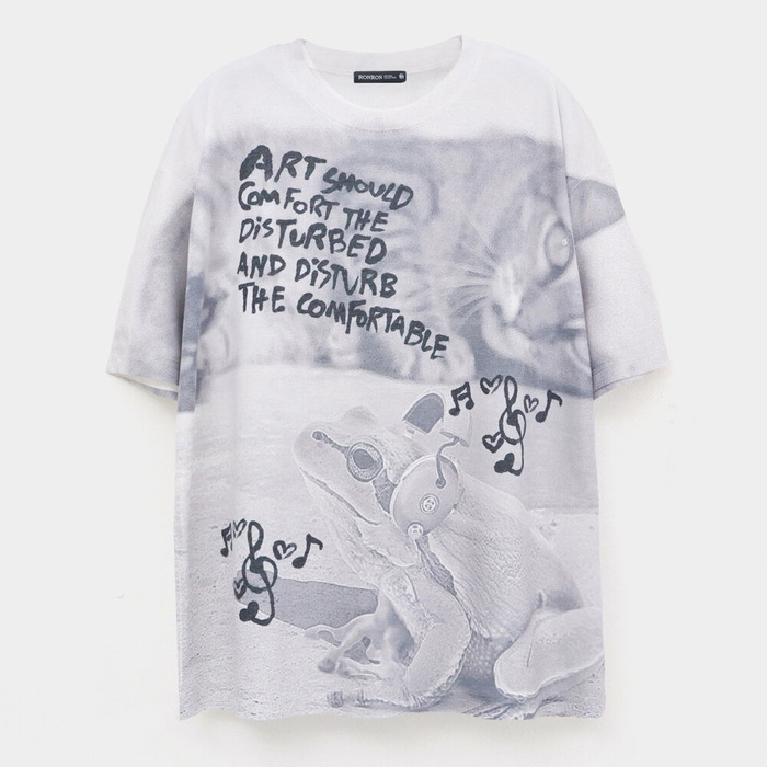 론론(ronron) MUSIC FROG OVER FIT T SHIRTS MONOCHROME.