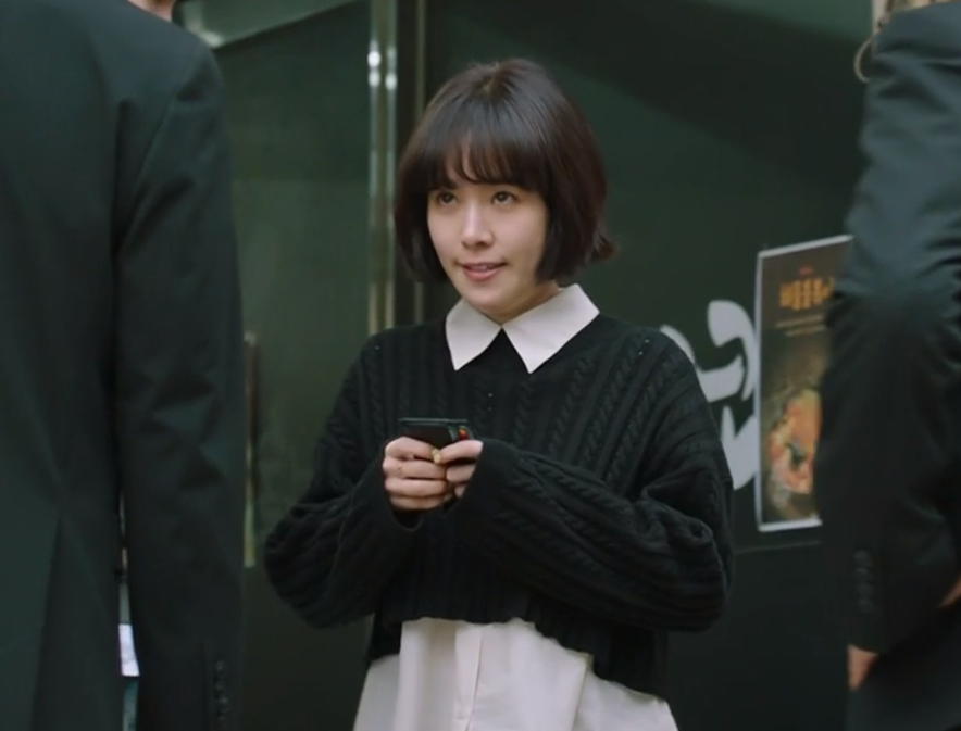 힙하게 6회 230827 한지민 봉예분 크롭 니트 탑 옷 패션 브랜드 정보 - 타임 TIME 울 크롭 니트 탑 & 슬리브리스 셔츠