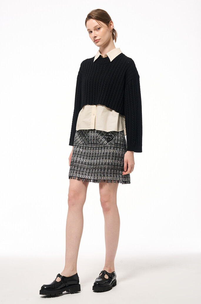 울 크롭 니트 탑 & 슬리브리스 셔츠
