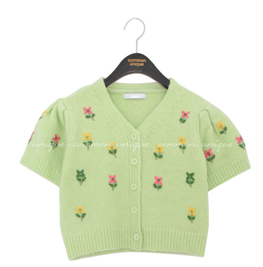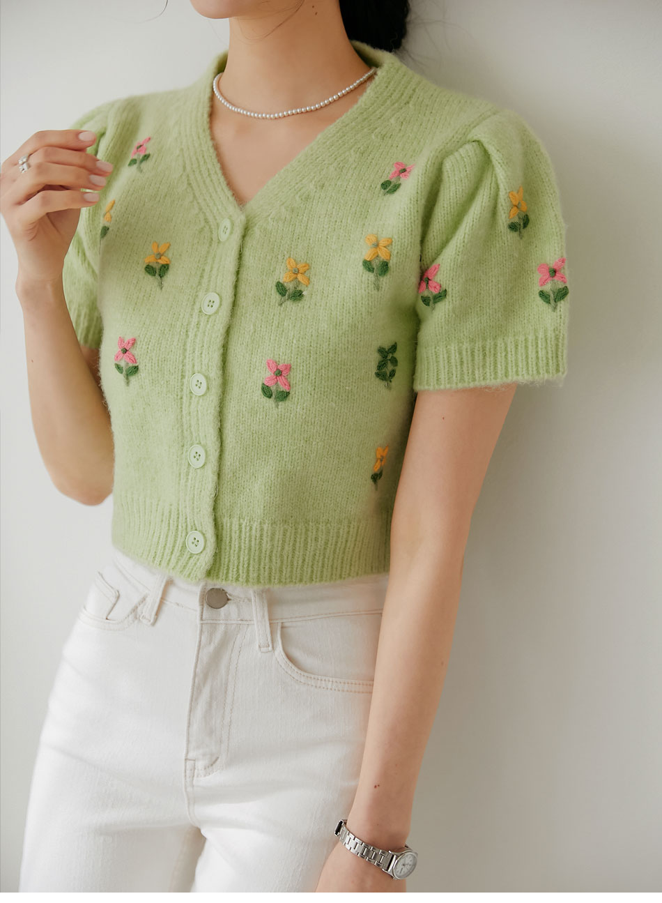 푸닝 플라워 퍼프 1/2 니트 가디건