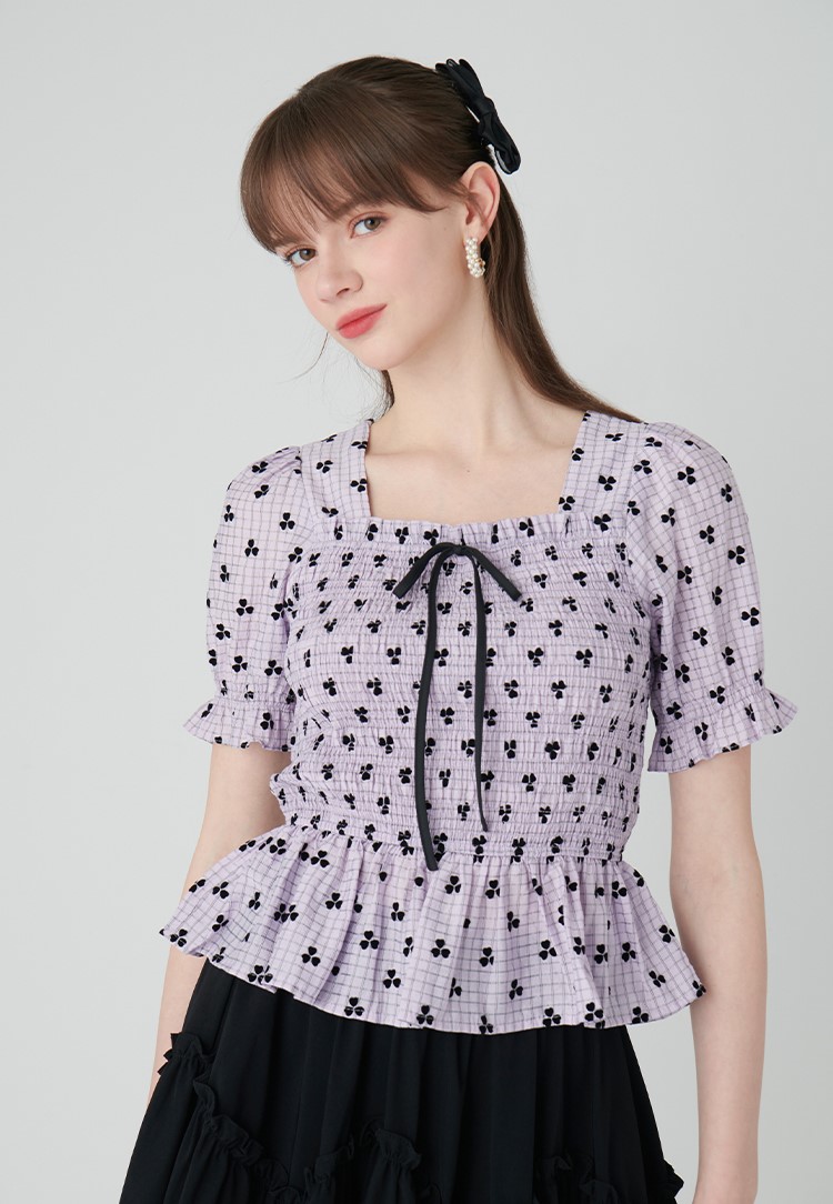[샤틴][케플러 서영은 착용]스퀘어넥 패턴 블라우스 O232T263 : 롯데ON